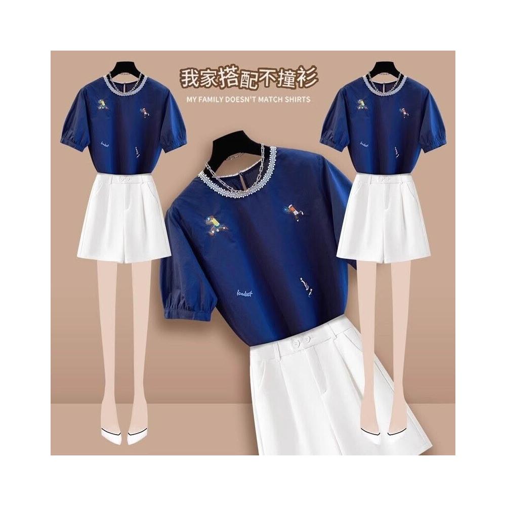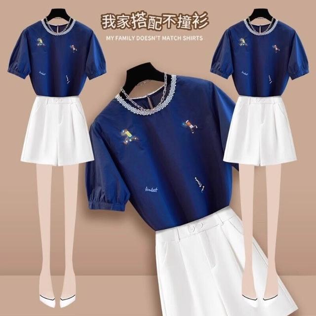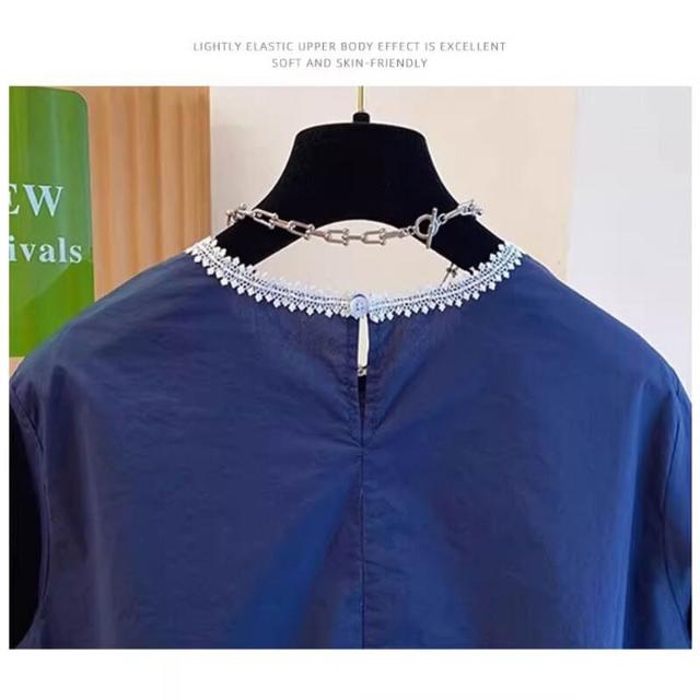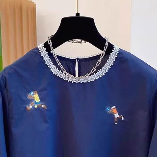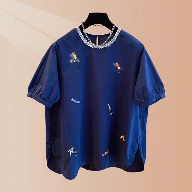 歐貨2025年夏季新款小眾高級設計T恤寬松顯瘦刺繡圓領短袖襯衫女 44b