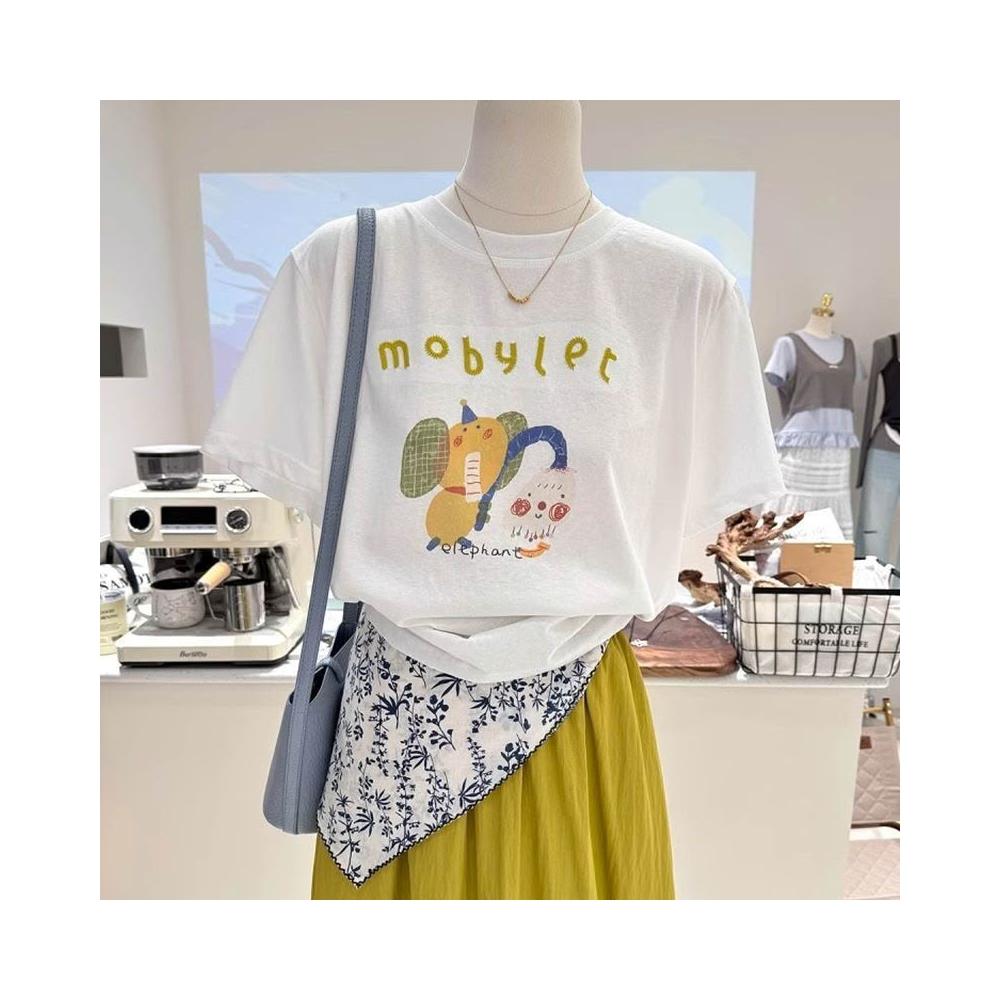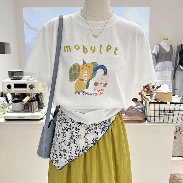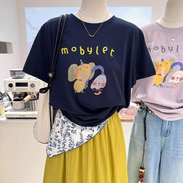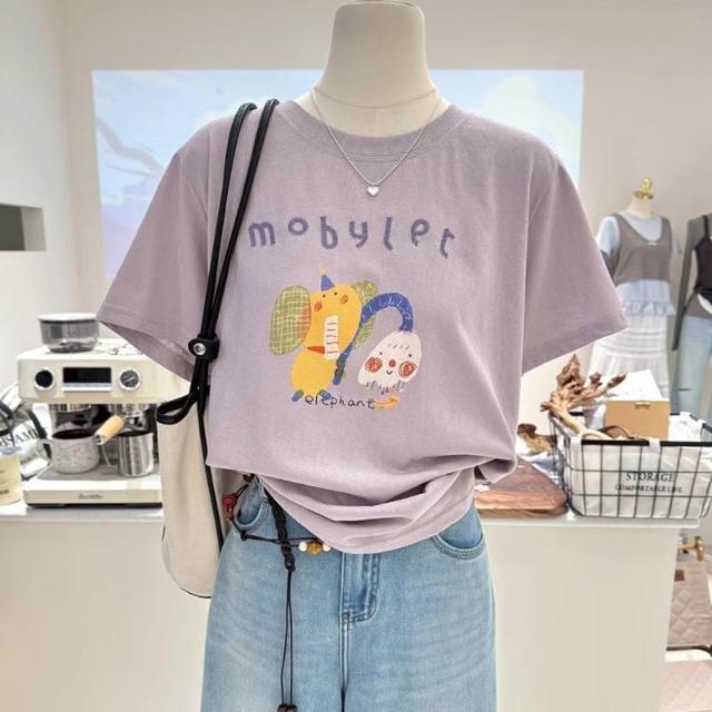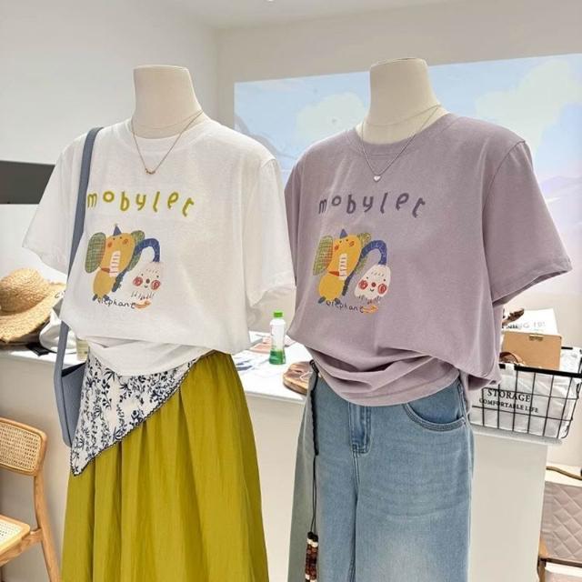 夏季新款寬松顯瘦短袖韓系百搭卡通減齡印花打底衫薄款T恤女上衣 c3f