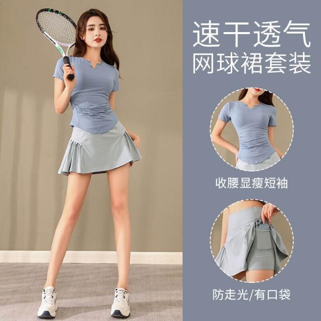 速幹網球裙羽毛球百褶裙子網球服運動套裝女夏季晨跑步瑜伽短裙 142