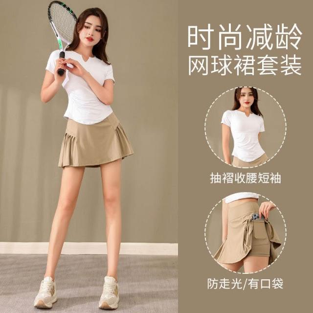 速幹網球裙羽毛球百褶裙子網球服運動套裝女夏季晨跑步瑜伽短裙 142