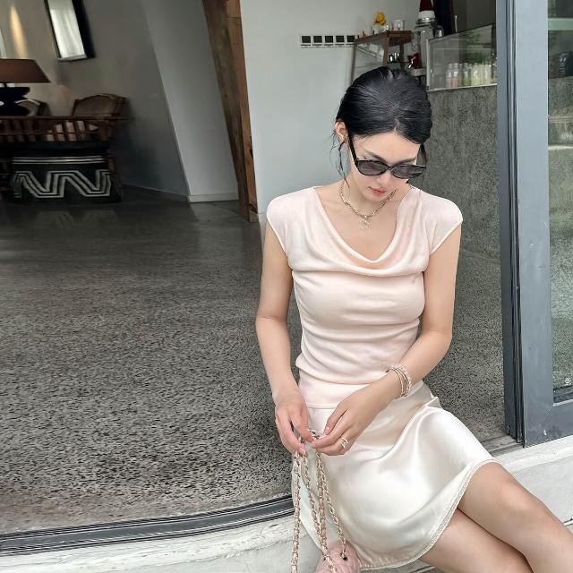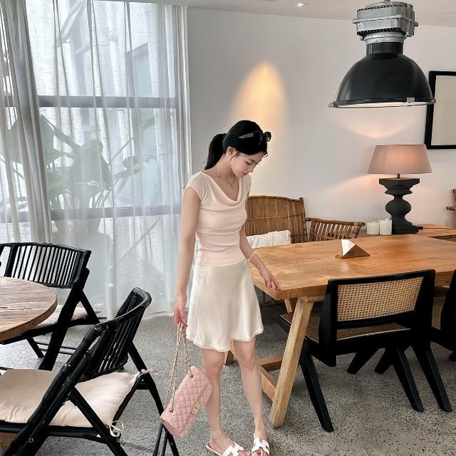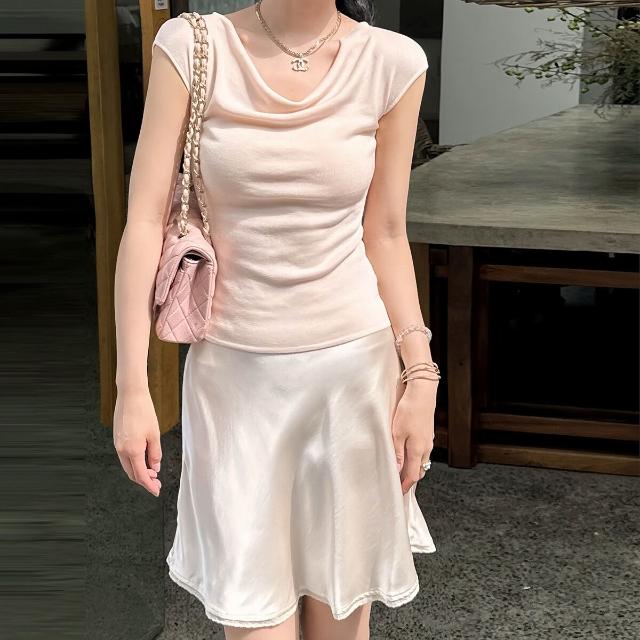 嬌嬌女友 天絲萊賽爾優雅蕩領小飛袖上衣氣質修身短袖夏季輕薄T恤 869