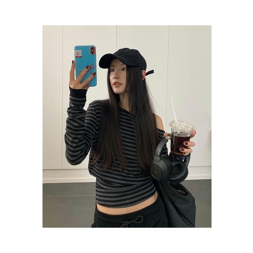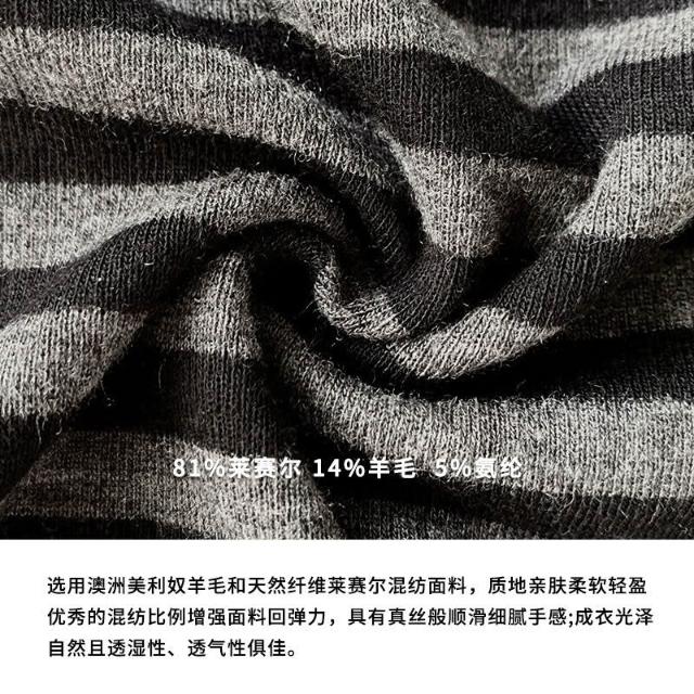 楠濤天絲羊毛一字肩打底衫早秋顯瘦露肩條紋女士長袖t恤上衣 4d5