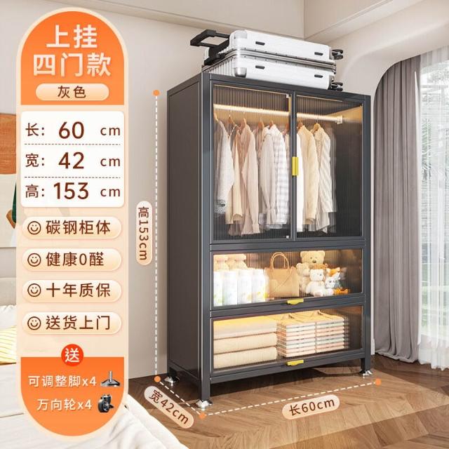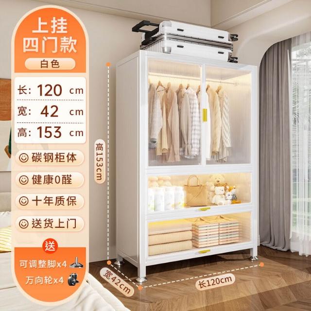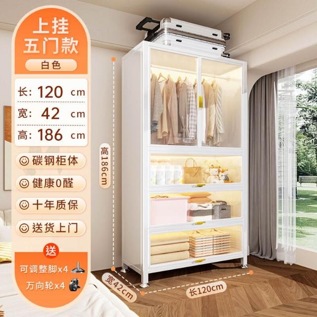 家用新款碳鋼衣櫃臥室大容量多功能收納櫃儲物櫃一體靠墻防塵衣櫥 298