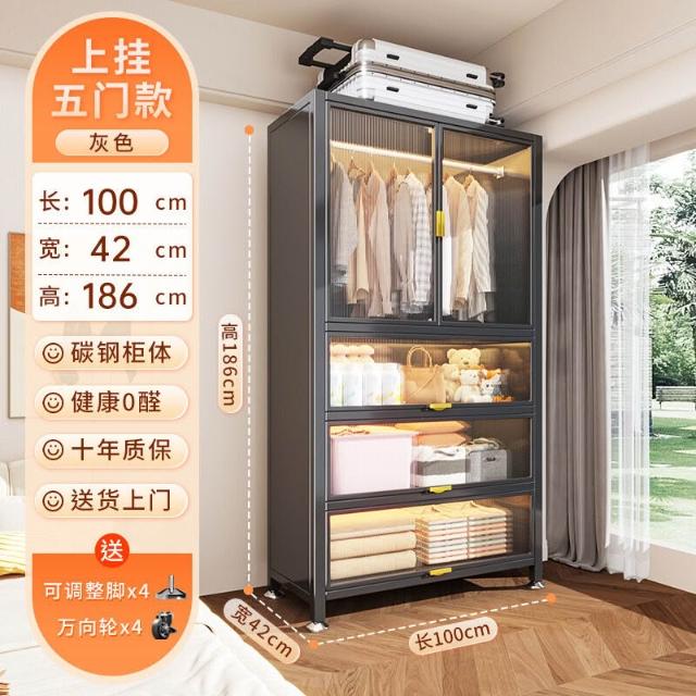 家用新款碳鋼衣櫃臥室大容量多功能收納櫃儲物櫃一體靠墻防塵衣櫥 298