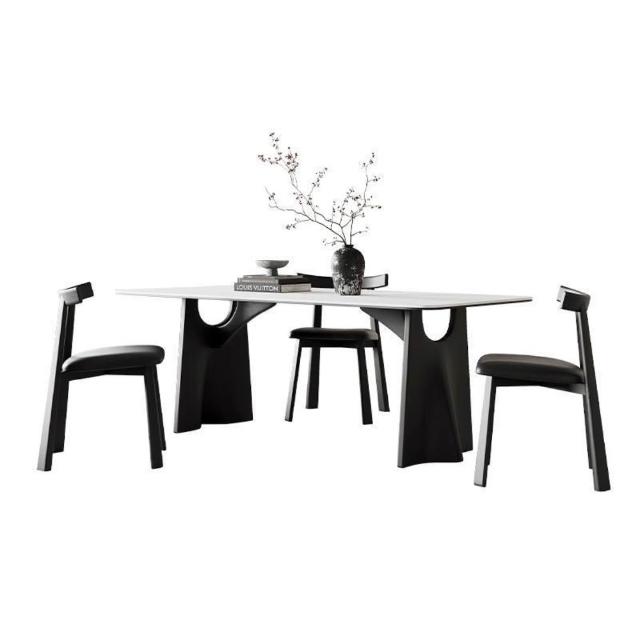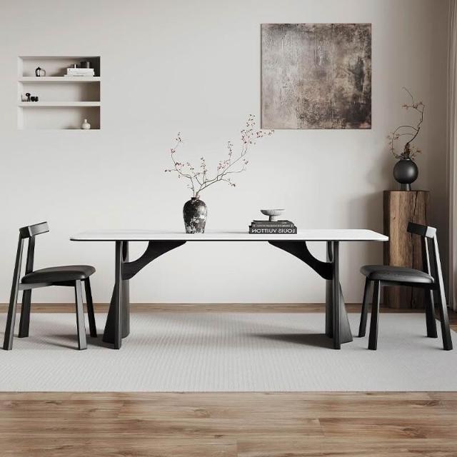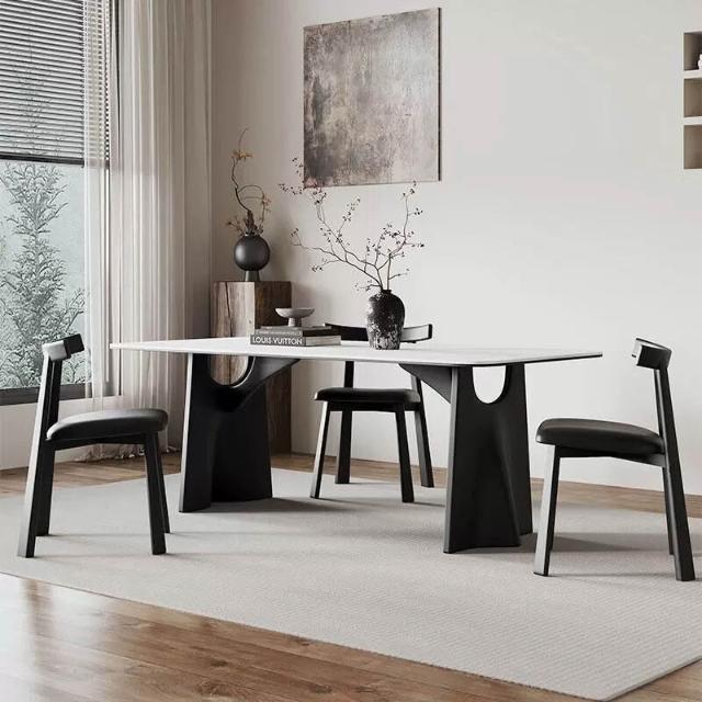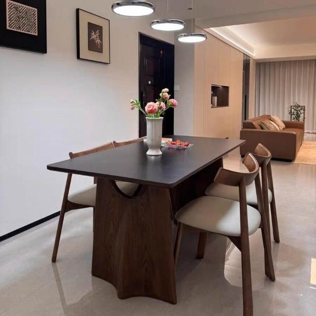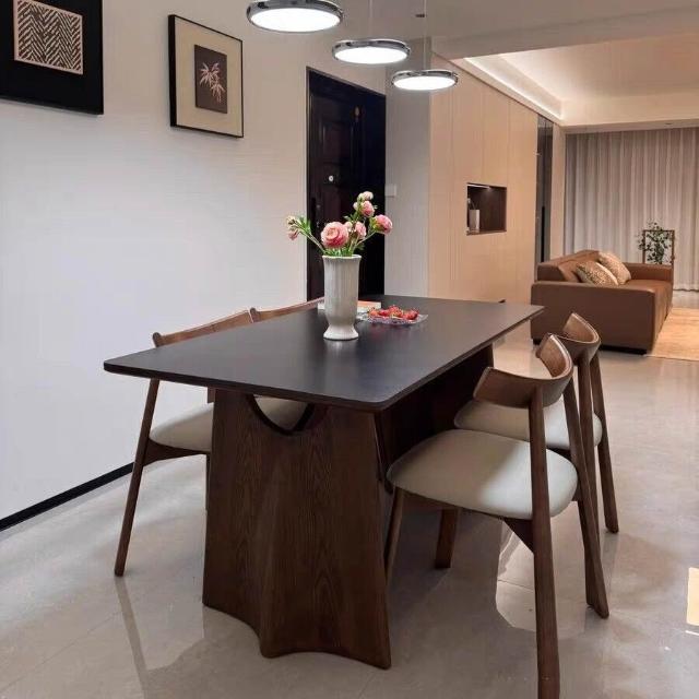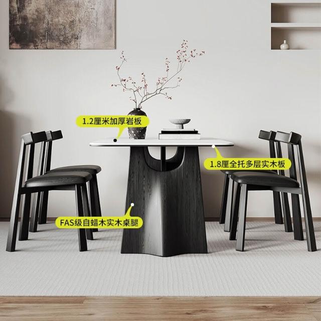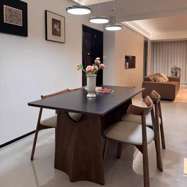 法式風實木巖板餐桌家用輕奢現代簡約小戶型白蠟木餐桌椅組合 251