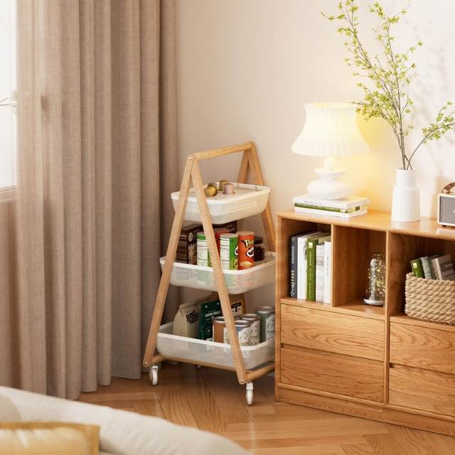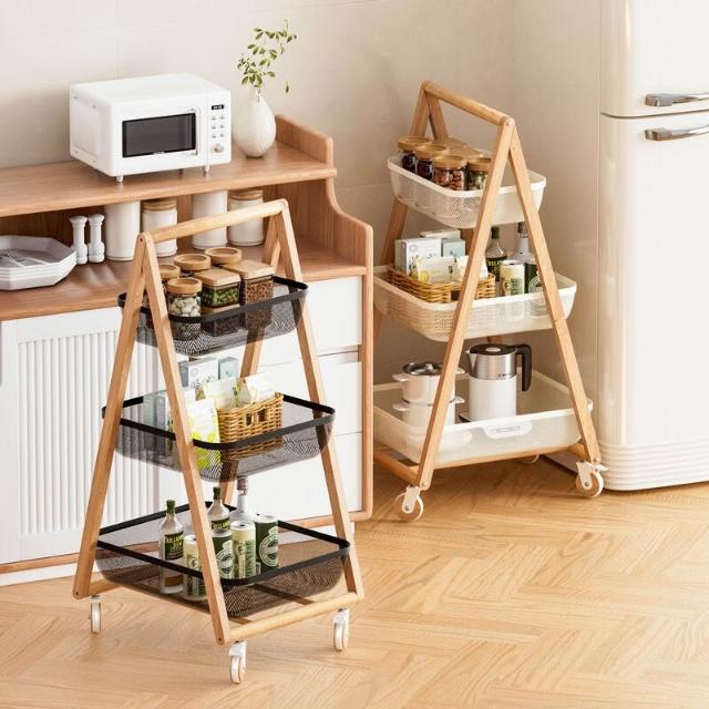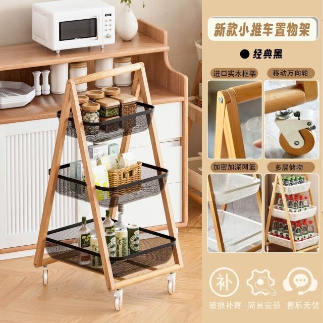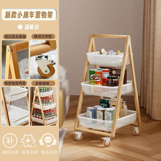 實木可移動小推車家用儲物架零食架子廚房置物架收納架 zhw