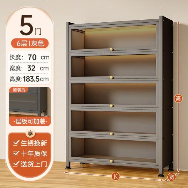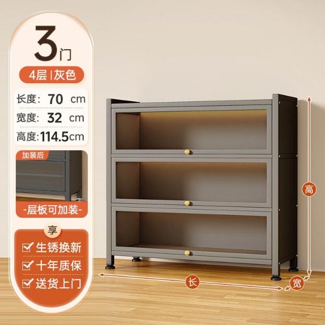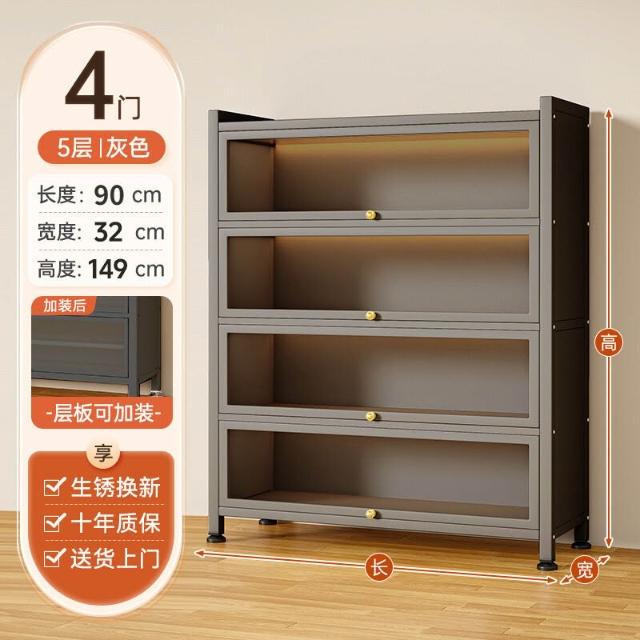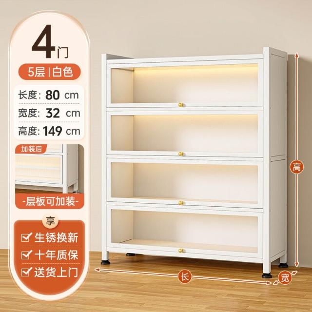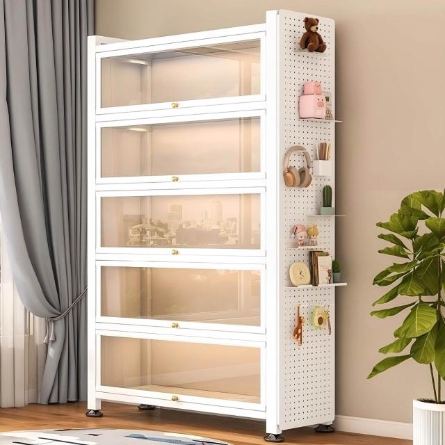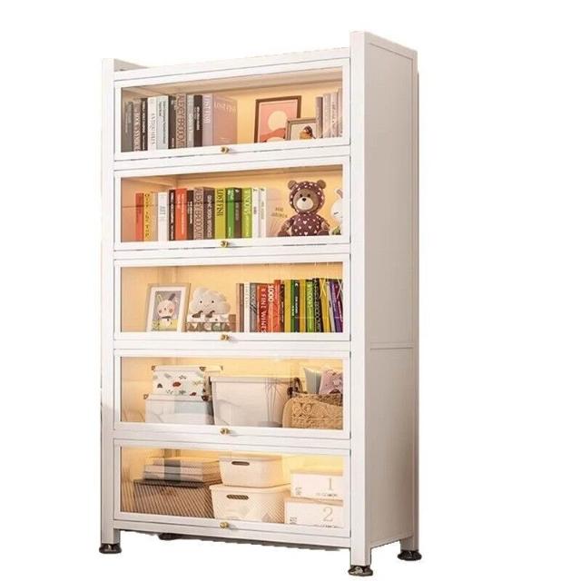 鋼製書架帶門玻璃書櫃落地防塵鐵皮手辦展示櫃家用儲物櫃收納櫃子 zhw
