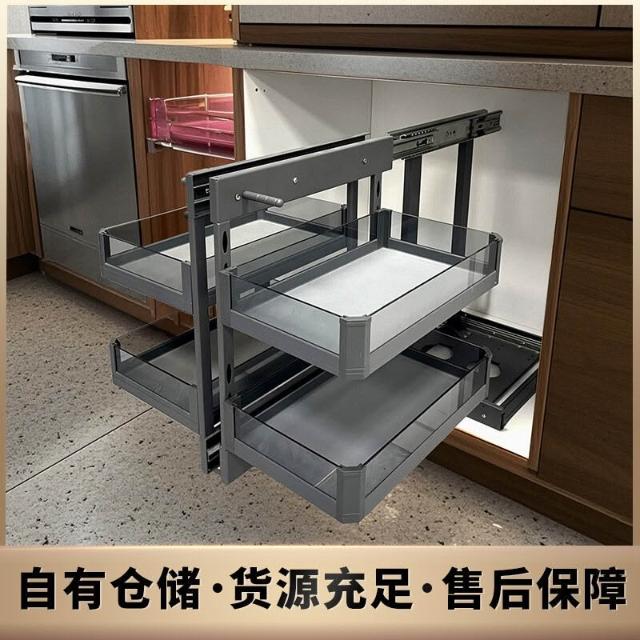 轉角拉籃廚房轉角櫃拉籃拉籃櫥櫃內置物架鍋架抽屜式拐角收納架 278