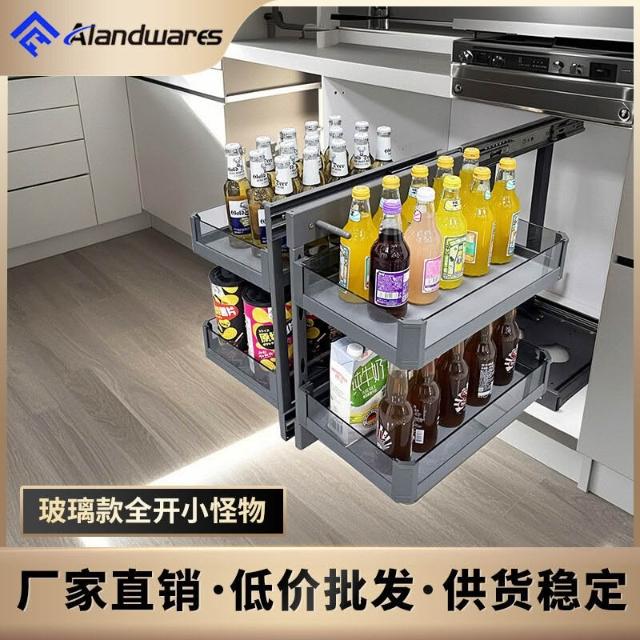 轉角拉籃廚房轉角櫃拉籃拉籃櫥櫃內置物架鍋架抽屜式拐角收納架 278