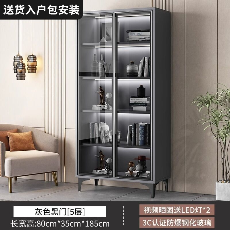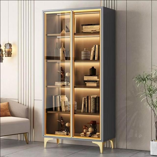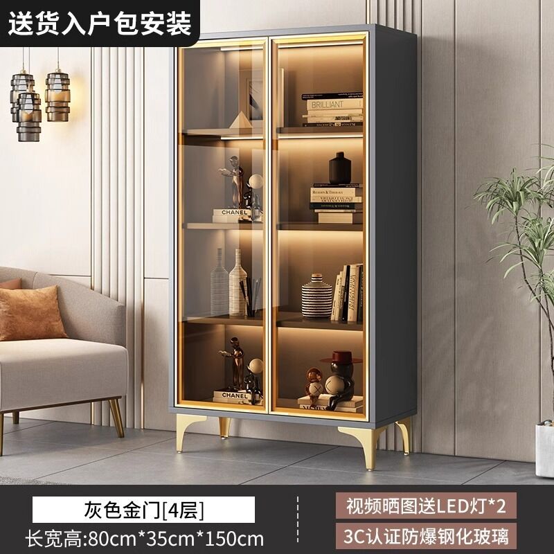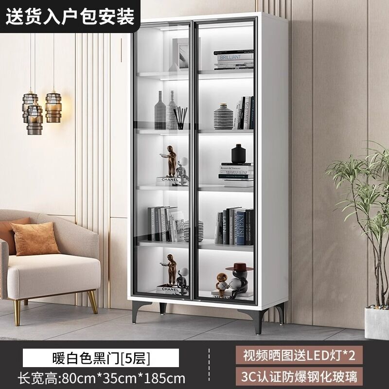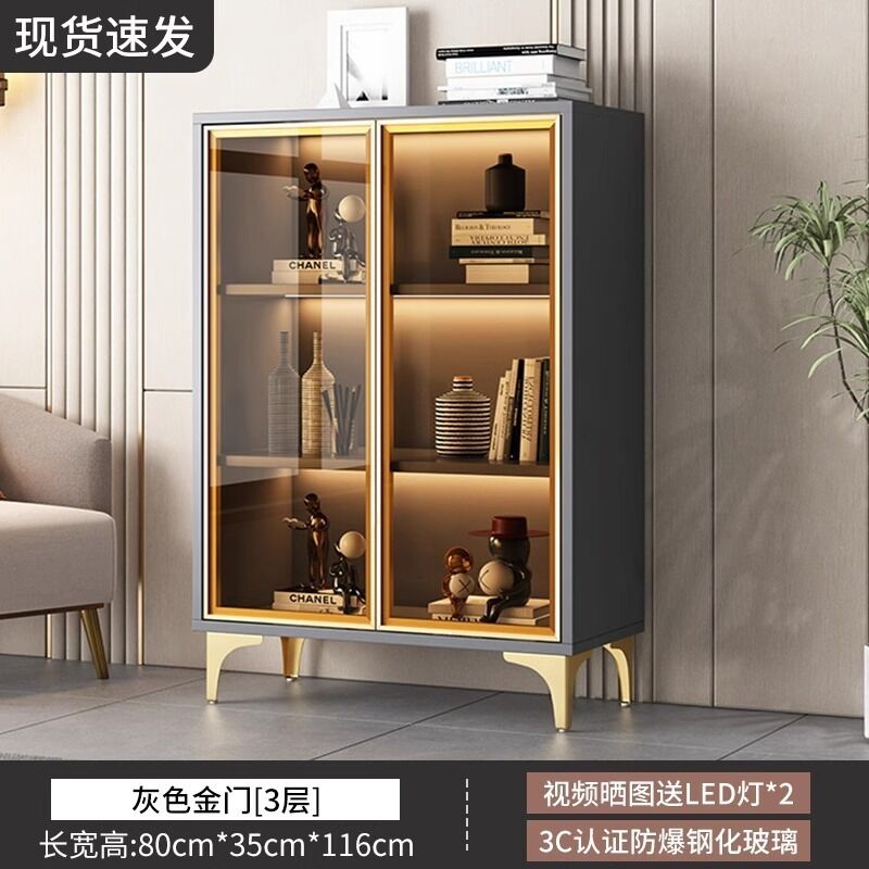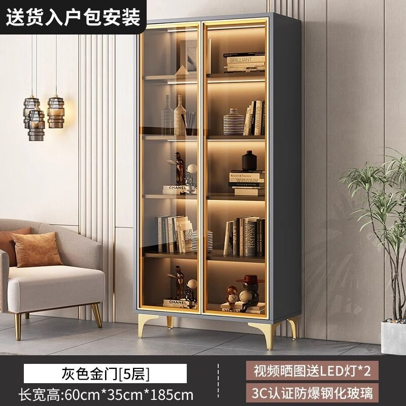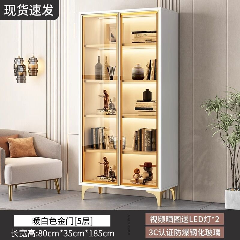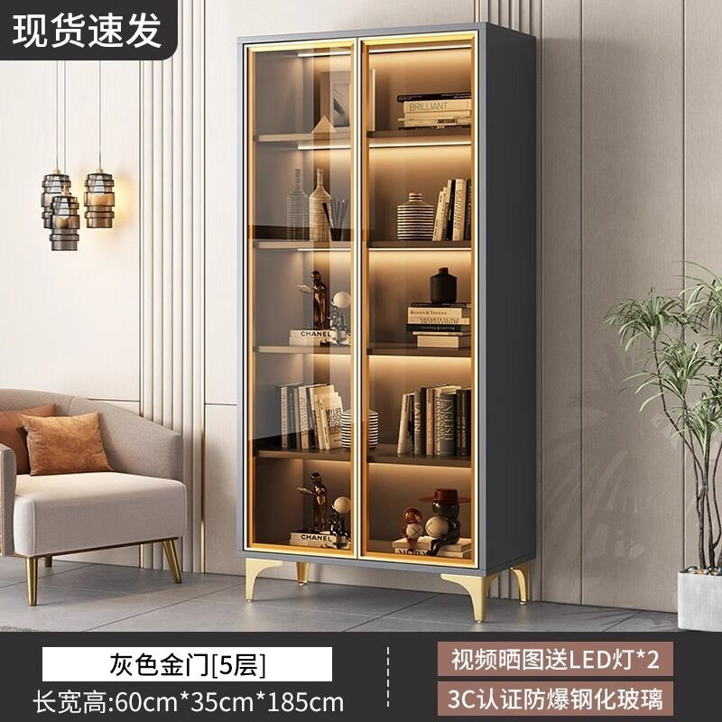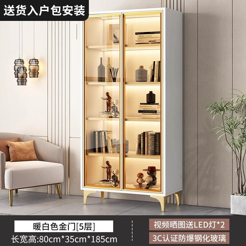書櫃防塵輕奢手辦帶玻璃門展示櫃落地客廳模型置物架儲物陳列櫃子