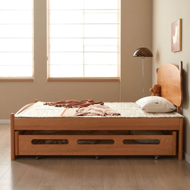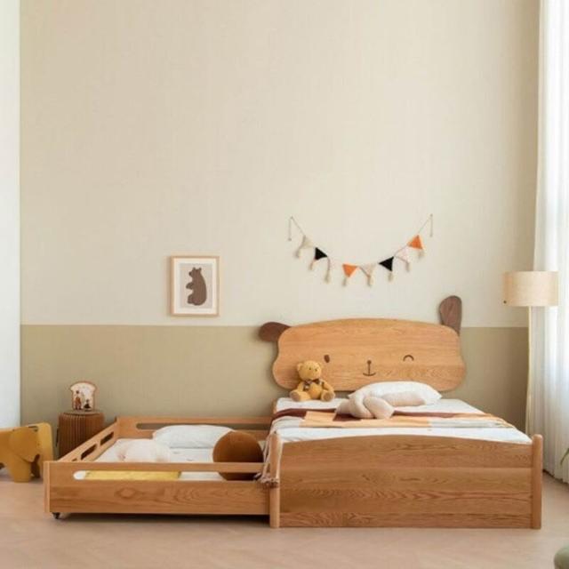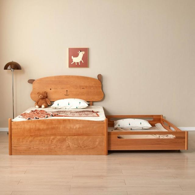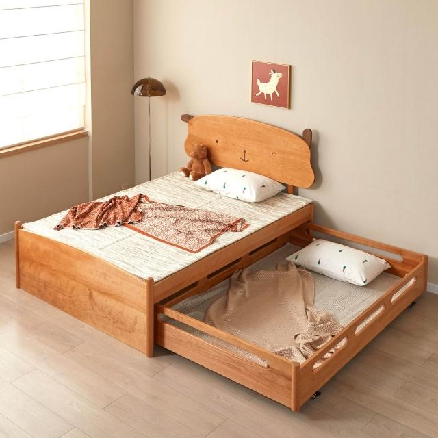 橡木床卡通簡約推拉拖床櫻桃木實木多功能雙層子母床 875