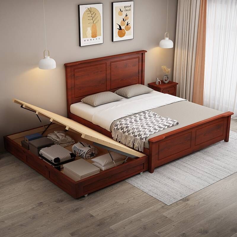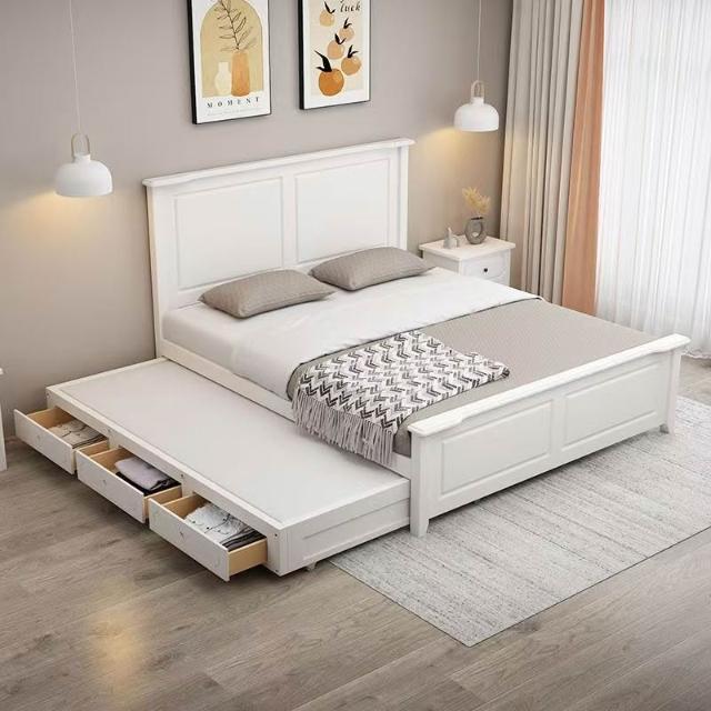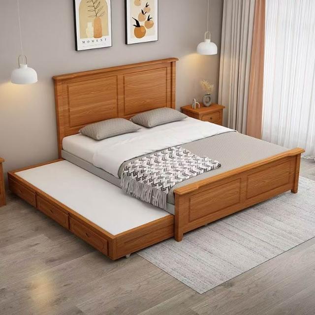 實木拖床抽拉大床雙人子母床主臥抽屜床可伸縮高箱儲物親子 230