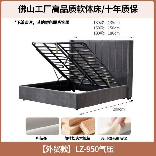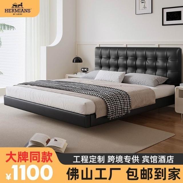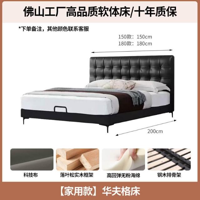 佛山華夫格真皮床簡約主臥室小戶型雙人床法式風儲物婚床 486