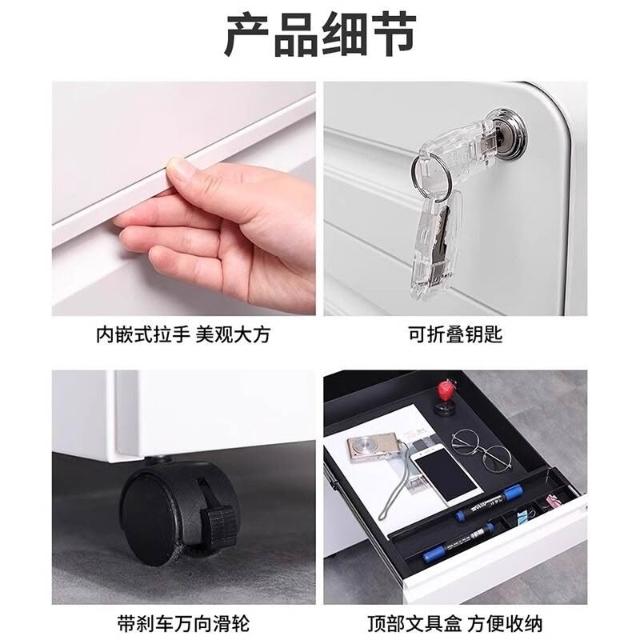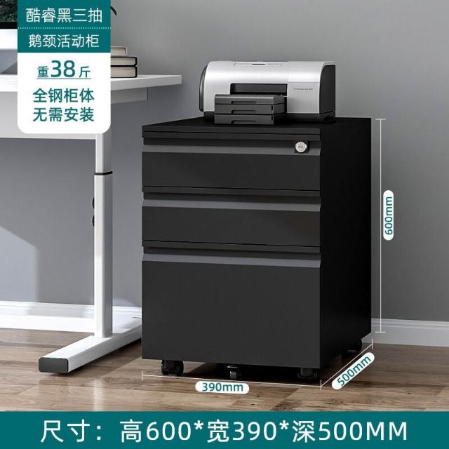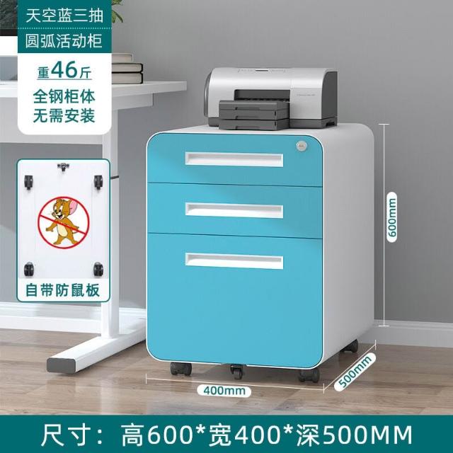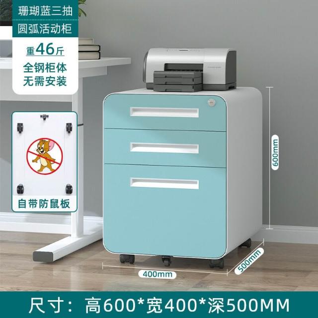 桌下活動櫃鐵皮文件櫃辦公室儲物櫃移動矮櫃帶鎖抽屜櫃收納小櫃子