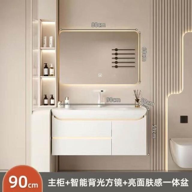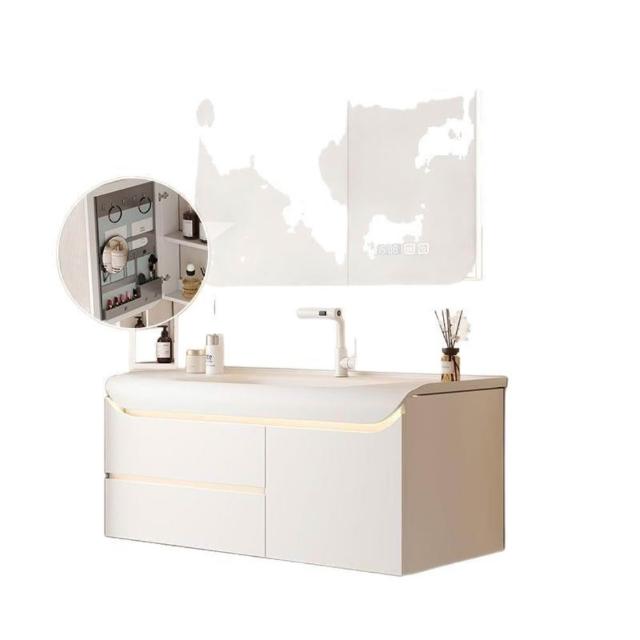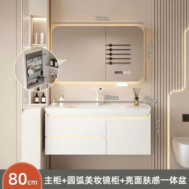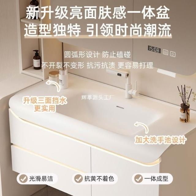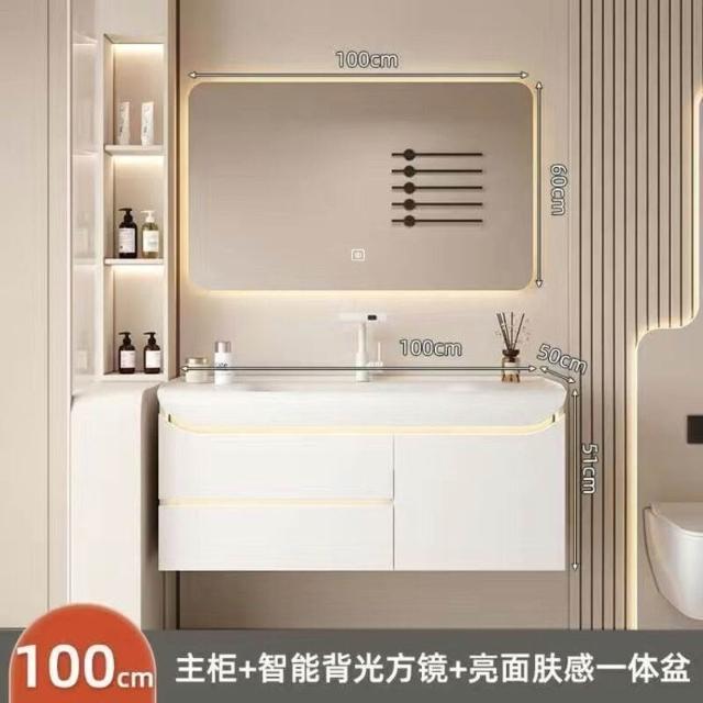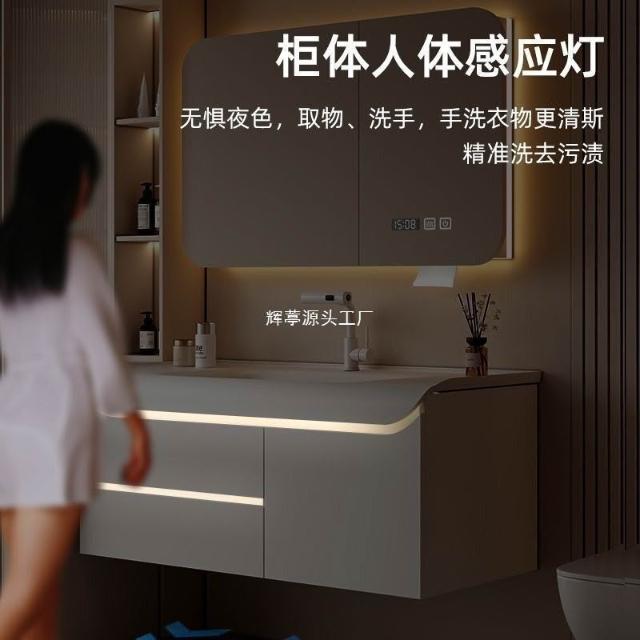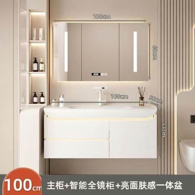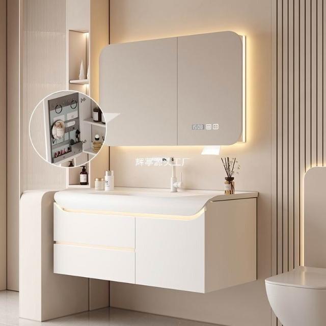 智能洗漱洗手臺浴室櫃組合實木可膚感一體盆櫃懸掛式洗臉盆櫃組合 zhw