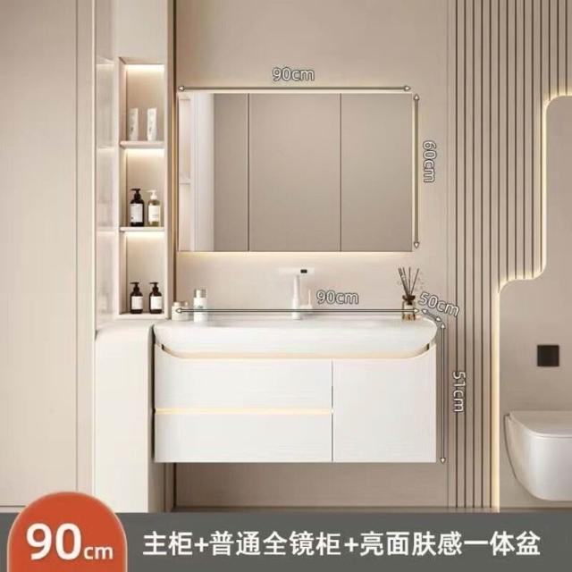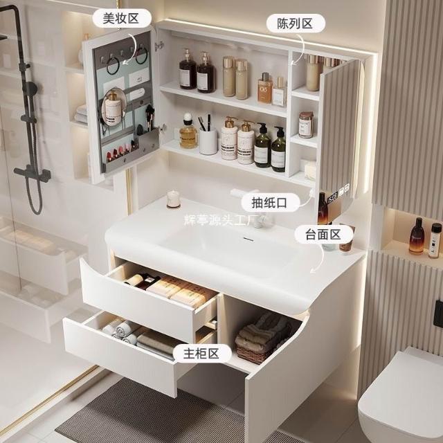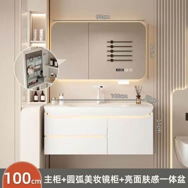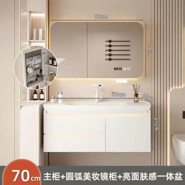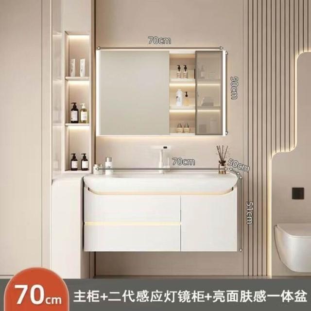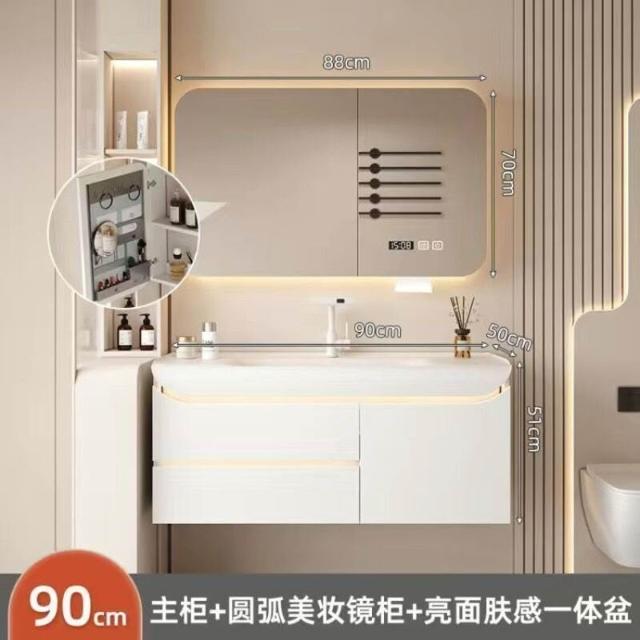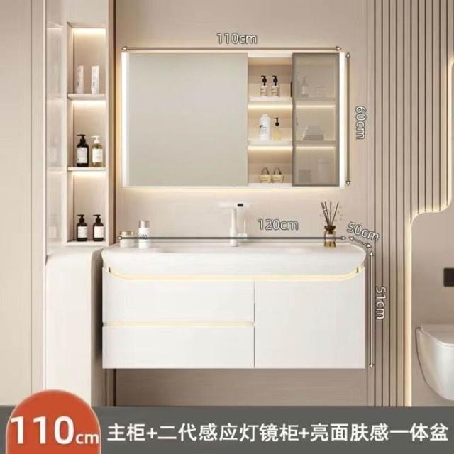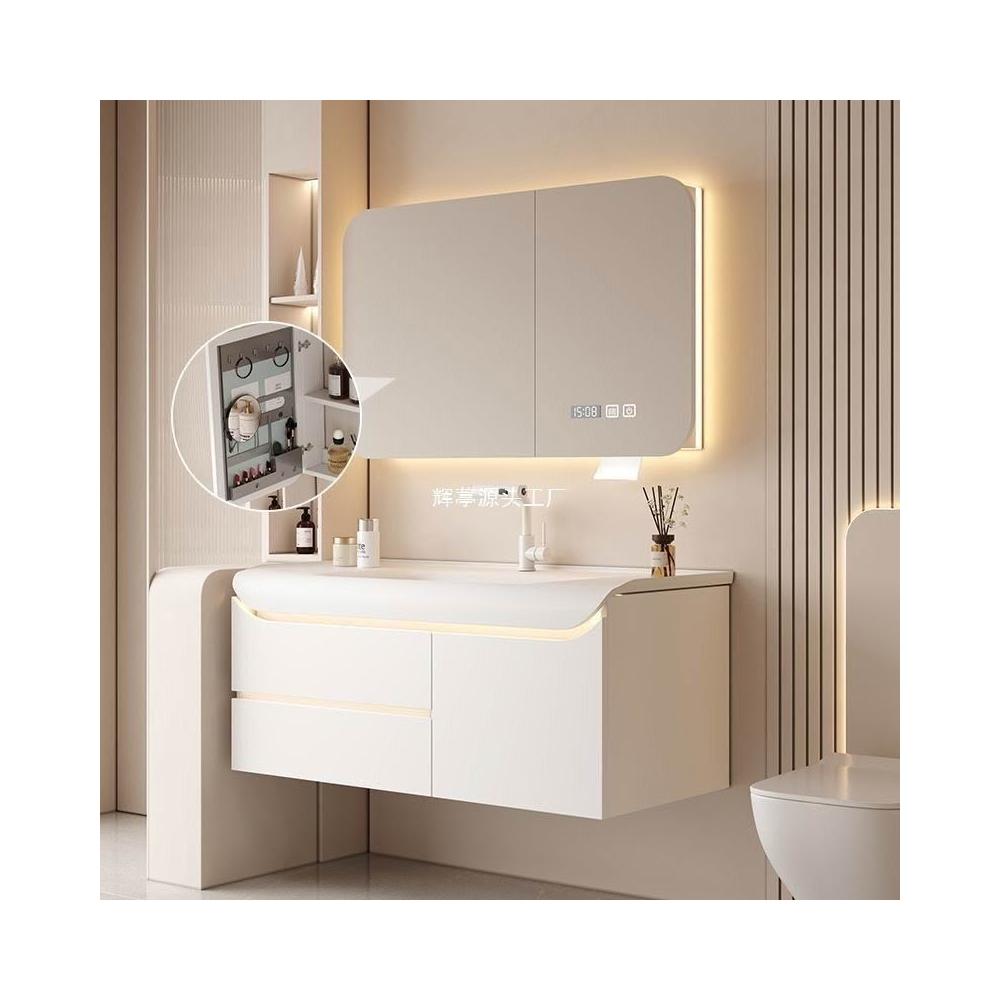 智能洗漱洗手臺浴室櫃組合實木可膚感一體盆櫃懸掛式洗臉盆櫃組合 zhw