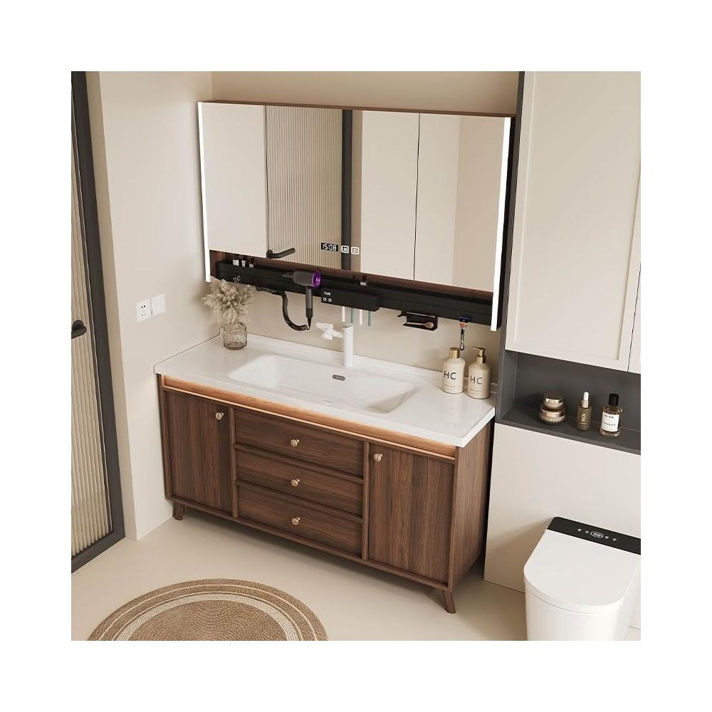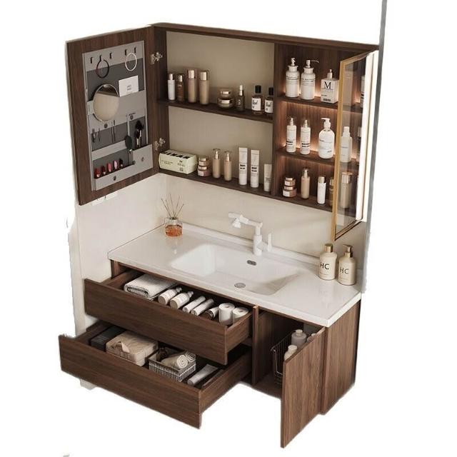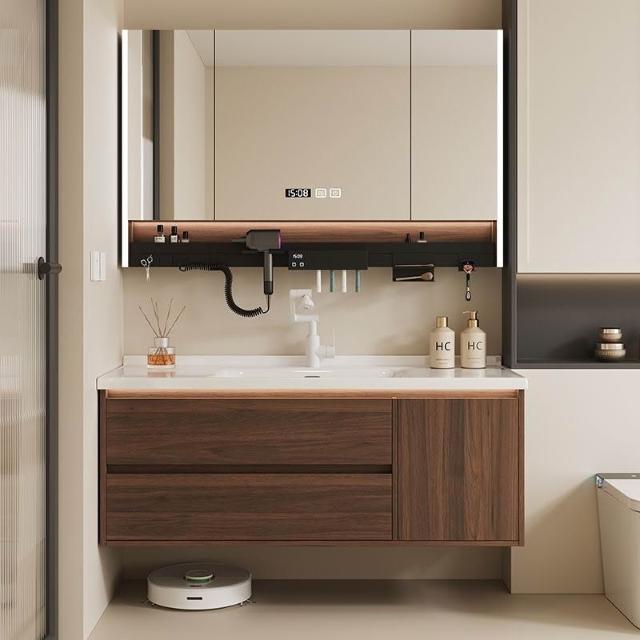 胡桃木洗手盆櫃組合衛生間浴室櫃陶瓷一體盆洗臉盆洗臉衛浴浴室櫃