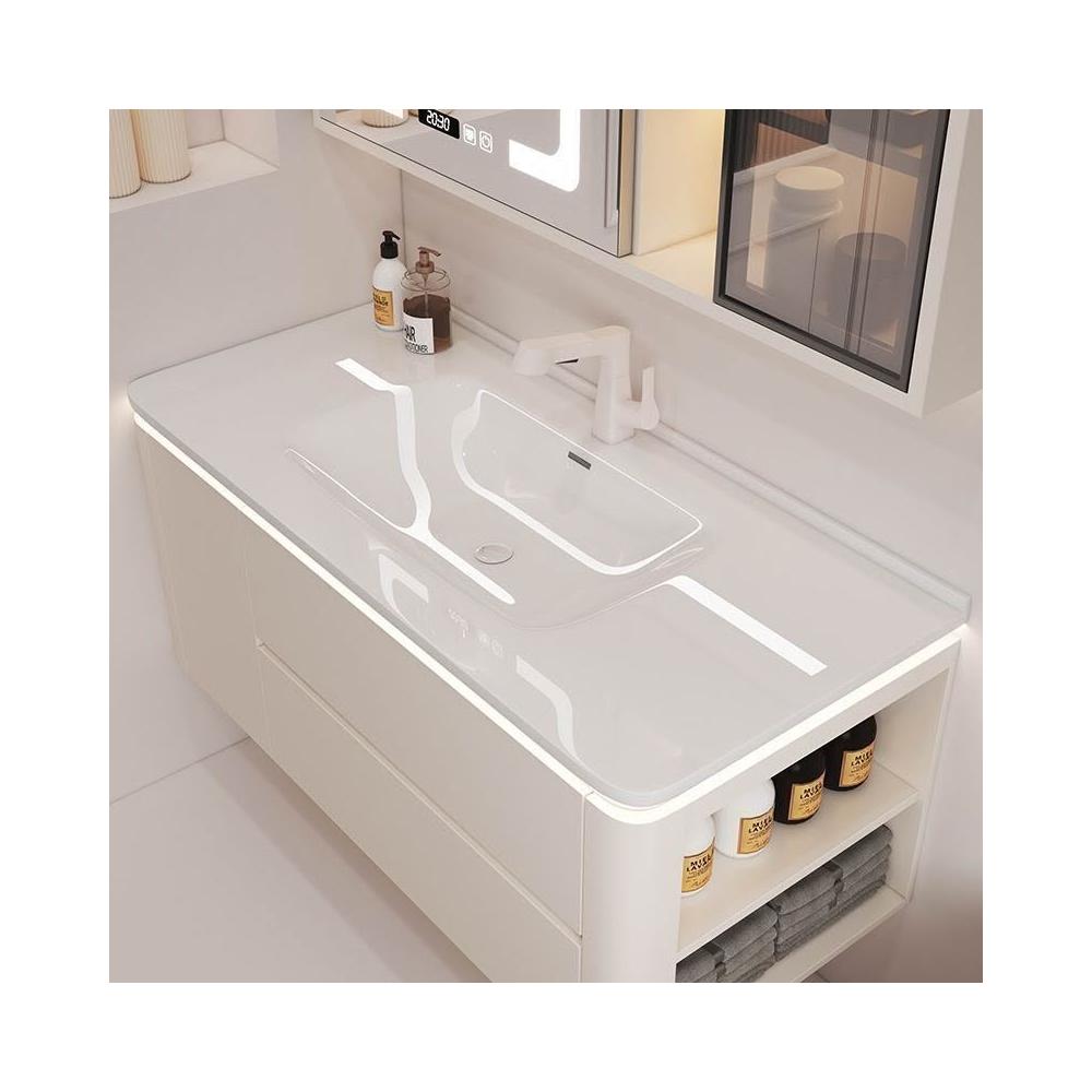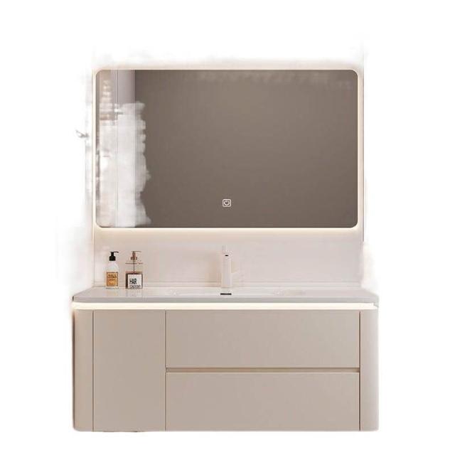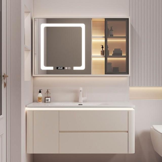簡約奶油洗手臺陶瓷一體現代衛生間智能實木浴室櫃洗漱組合洗臉盆