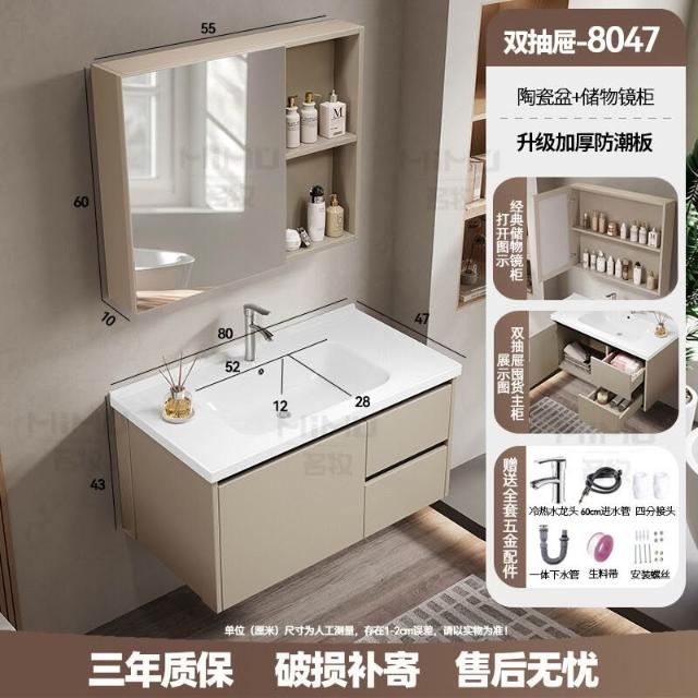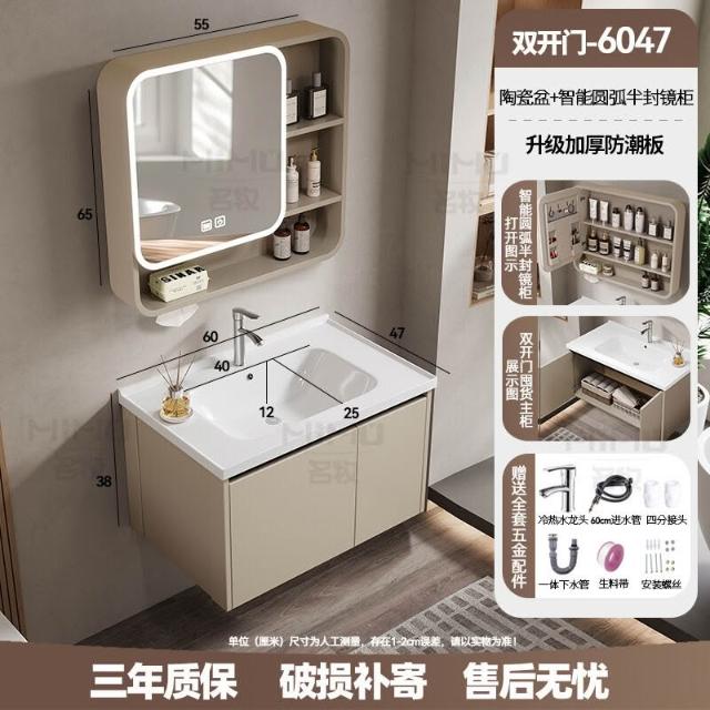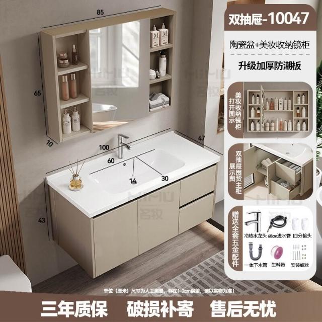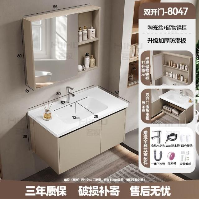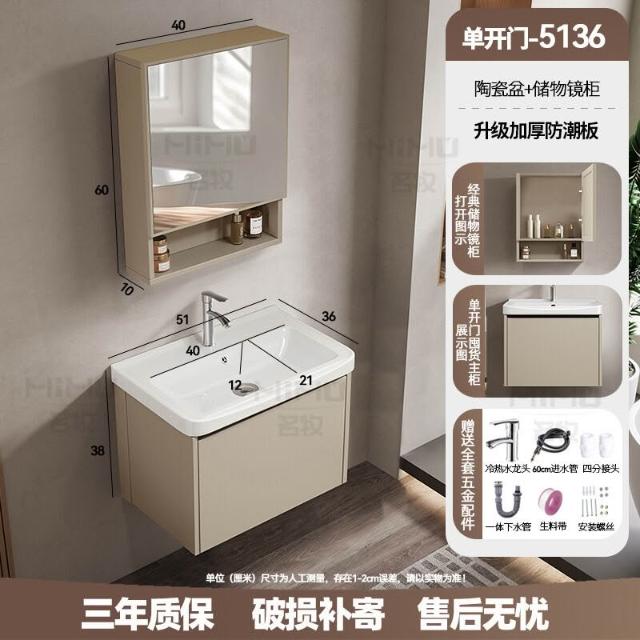 衛生間洗臉盆太空鋁浴室櫃組合小戶型巖板洗漱臺陶瓷一體盆洗手臺