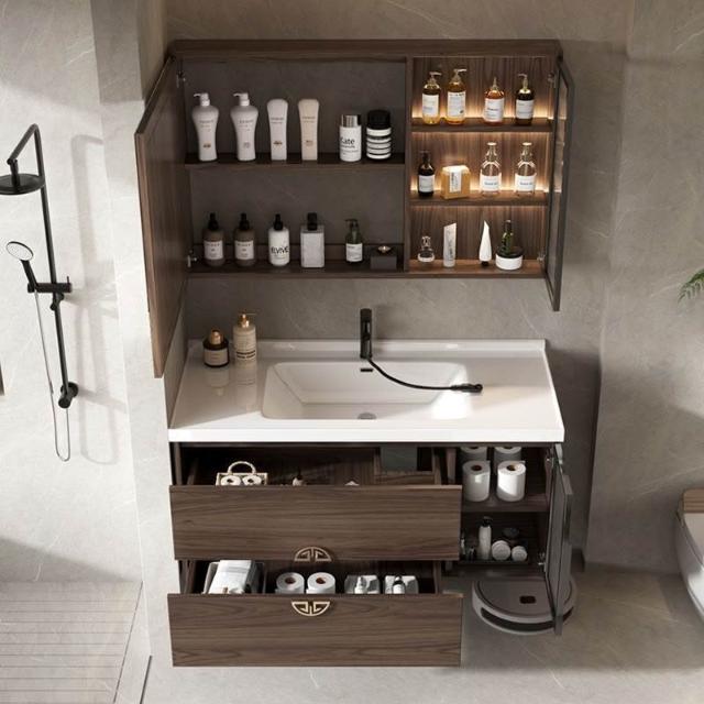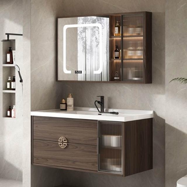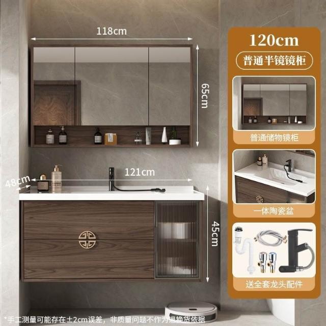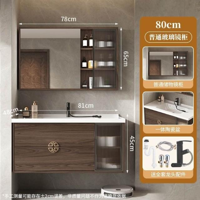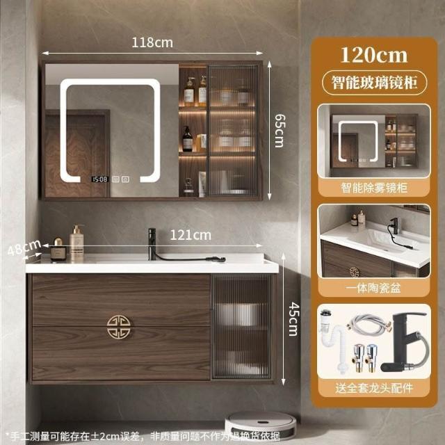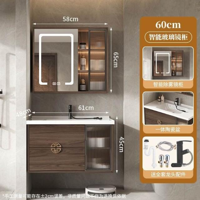 衛生間中式洗手池現代洗臉盆洗漱套裝智能實木陶瓷一體浴室櫃組合