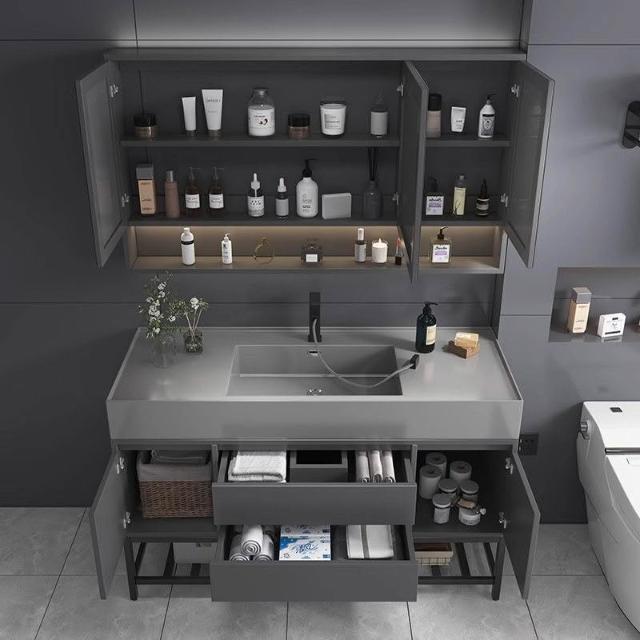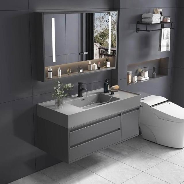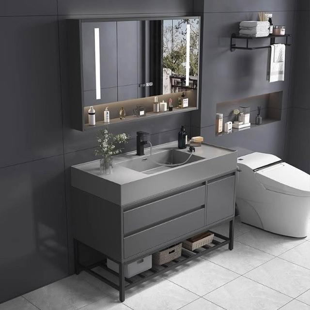 洗臉盆簡約組合納米巖石一體浴室櫃衛生間洗漱洗手池臺面智能鏡櫃