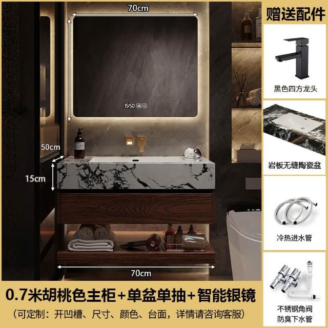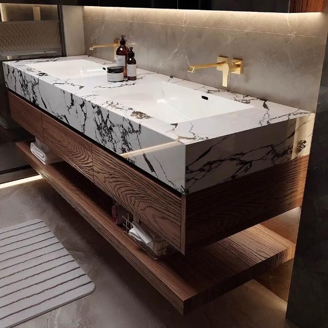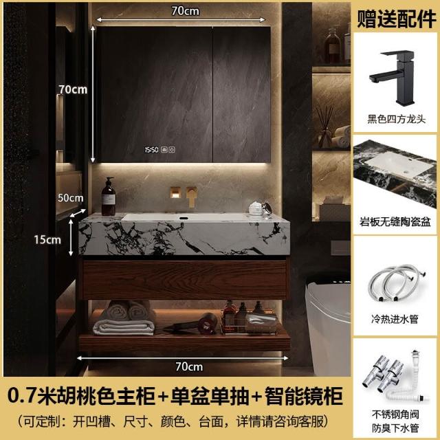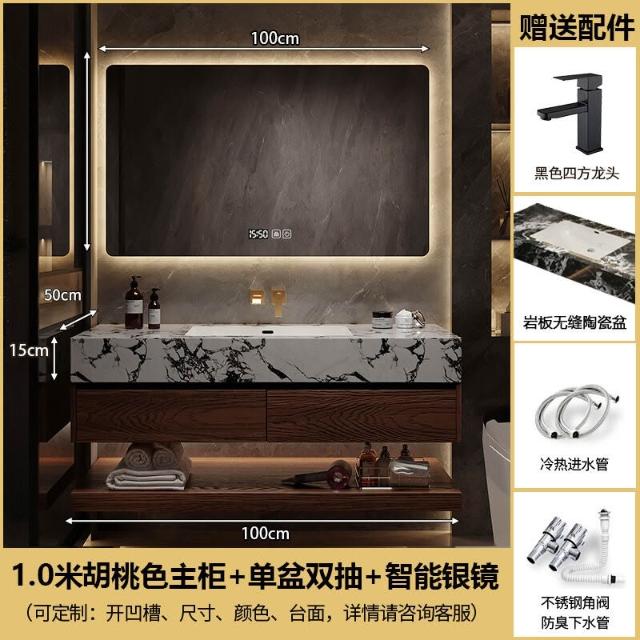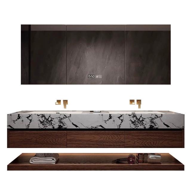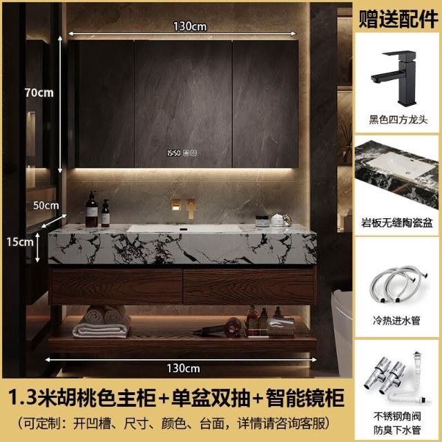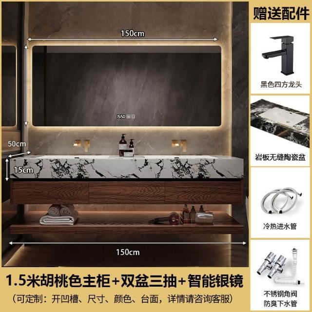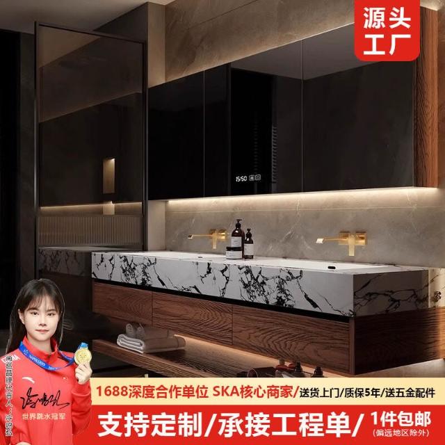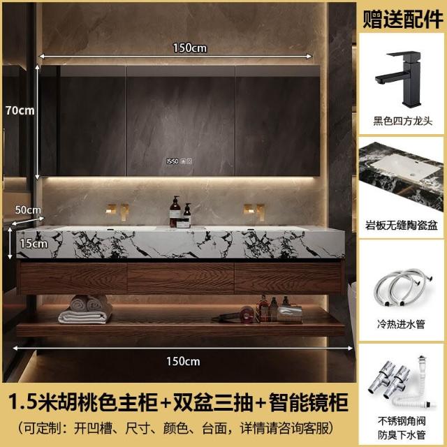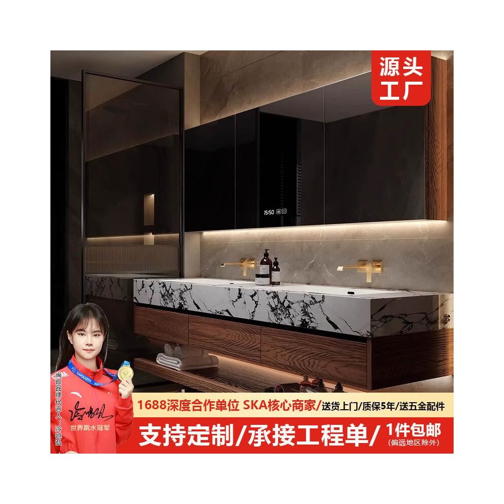 巖板陶瓷無縫雙盆洗漱臺北歐洗手洗漱池實木浴室櫃組合智能衛浴櫃