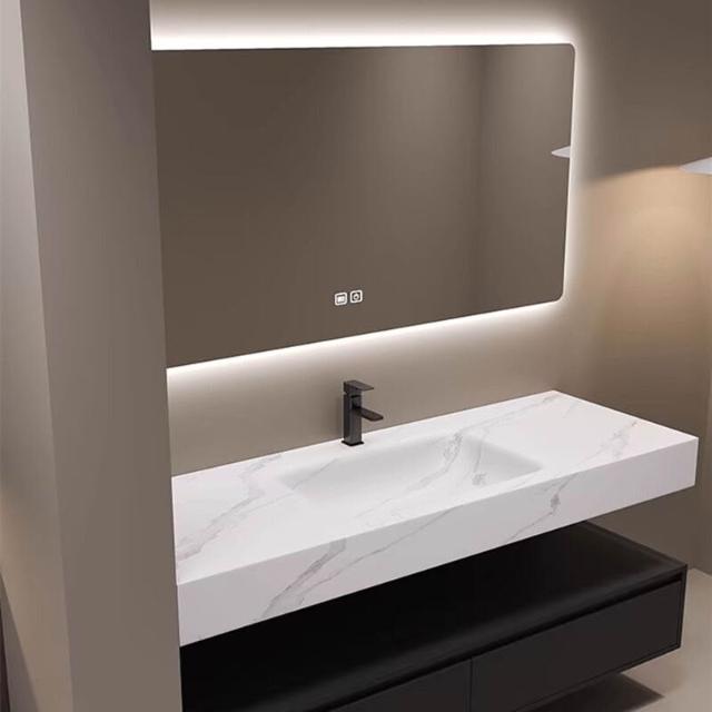 輕奢巖板熱彎一體盆洗漱臺浴室櫃衛生間智能浴室櫃組合洗臉洗手盆