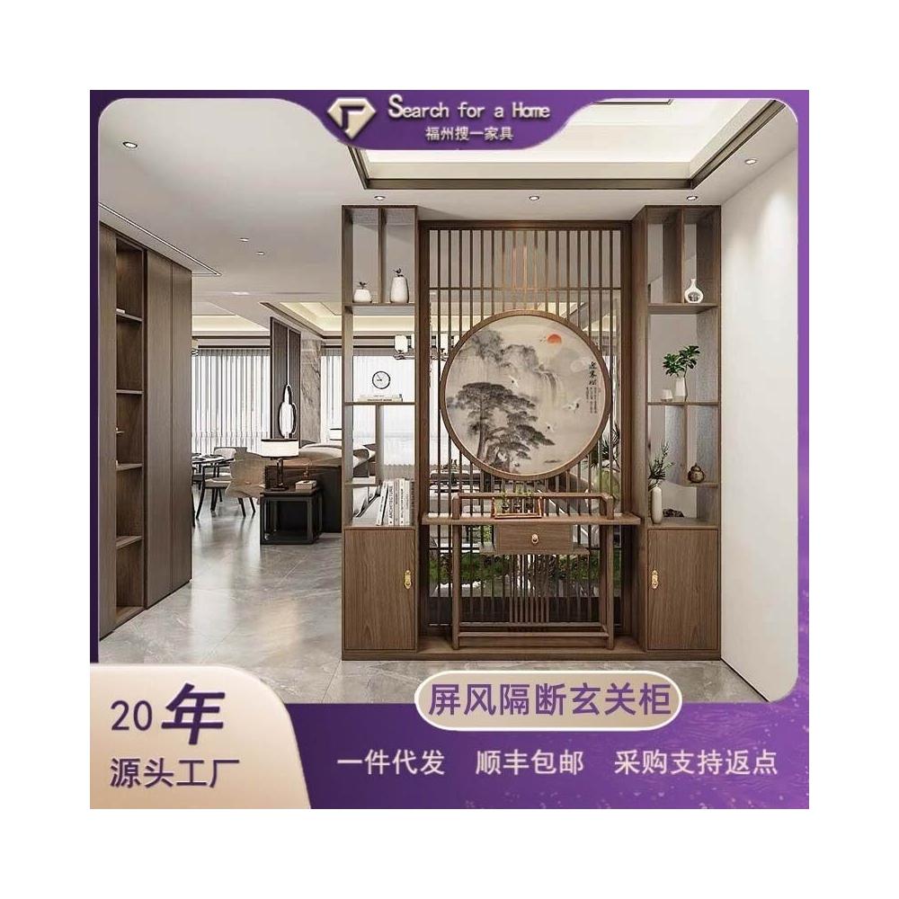 哇噢新中式屏風隔斷玄關櫃客廳實木格柵辦公室入戶正對門置物架