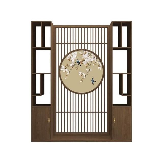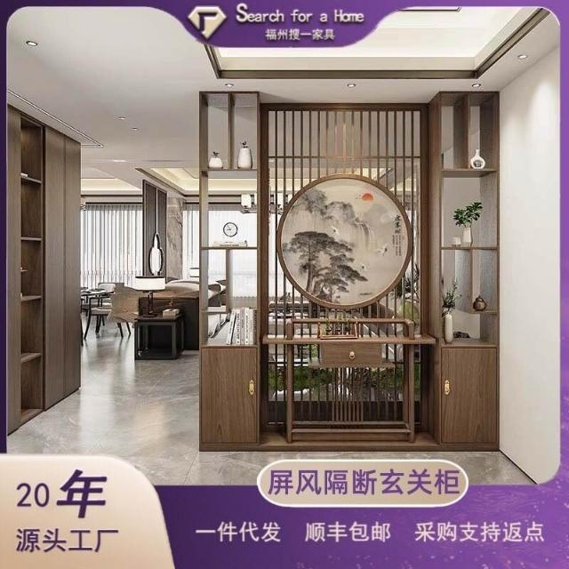 哇噢新中式屏風隔斷玄關櫃客廳實木格柵辦公室入戶正對門置物架