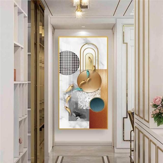 九魚圖玄關畫入戶裝飾畫走廊過道壁畫客廳正對門背景掛畫晶瓷畫 001