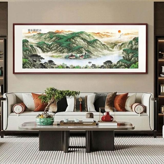 《富水長流》客廳裝飾畫沙發背景壁畫大幅山水國畫新中式辦公室掛畫 c48