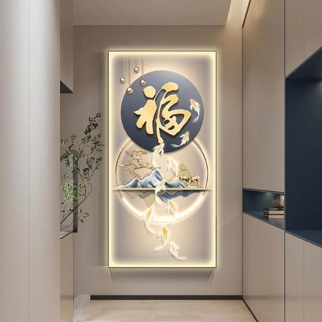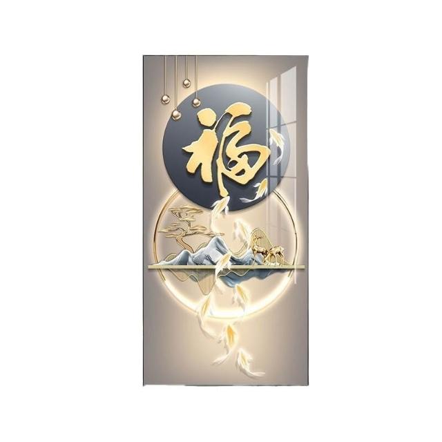 輕氧衣櫥 LED帶燈輕奢福字玄關裝飾畫入戶走廊過道掛畫九魚圖高級大氣燈畫 c6f