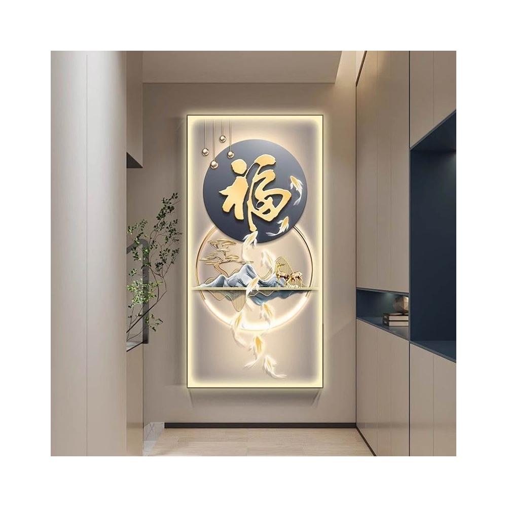 輕氧衣櫥 LED帶燈輕奢福字玄關裝飾畫入戶走廊過道掛畫九魚圖高級大氣燈畫 c6f