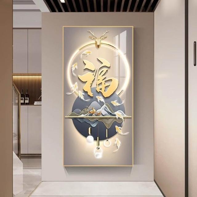 輕氧衣櫥 LED帶燈輕奢福字玄關裝飾畫入戶走廊過道掛畫九魚圖高級大氣燈畫 c6f