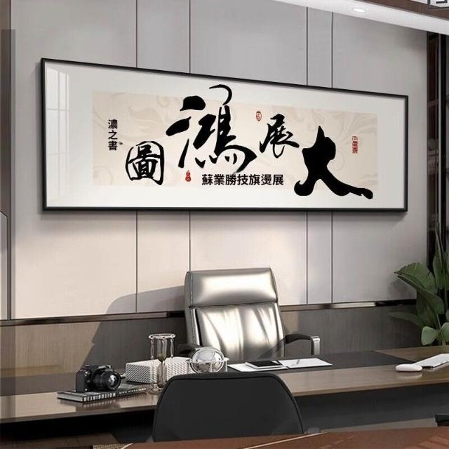 大展鴻圖字畫辦公室裝飾畫茶室背景墻掛畫財源廣進牌匾書法壁畫 26df