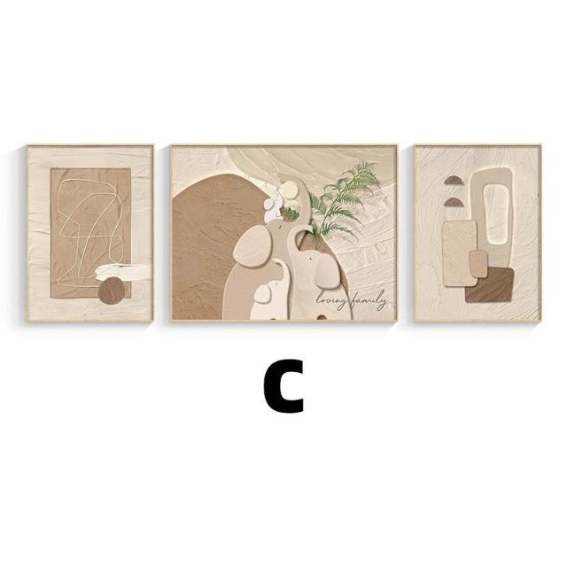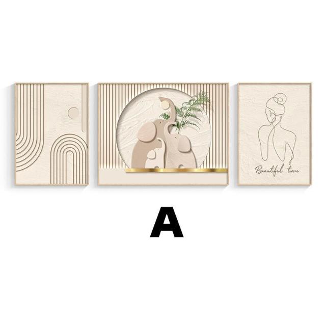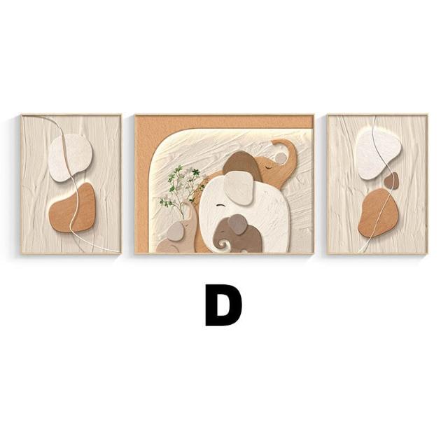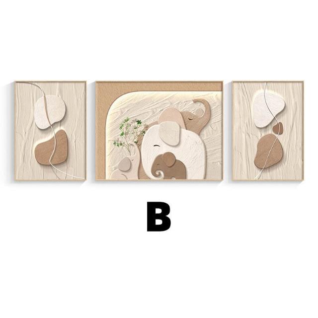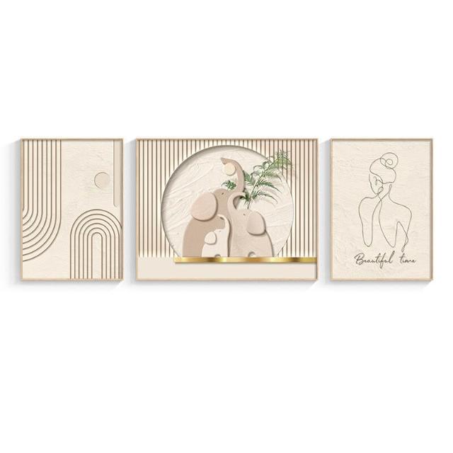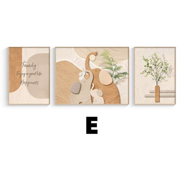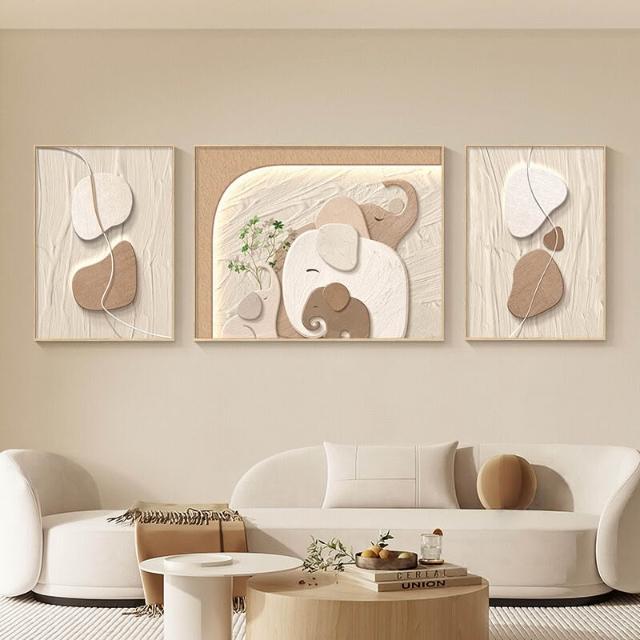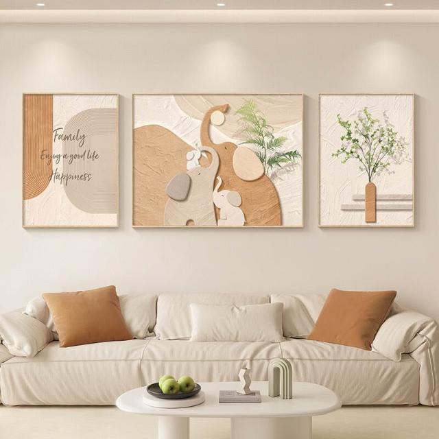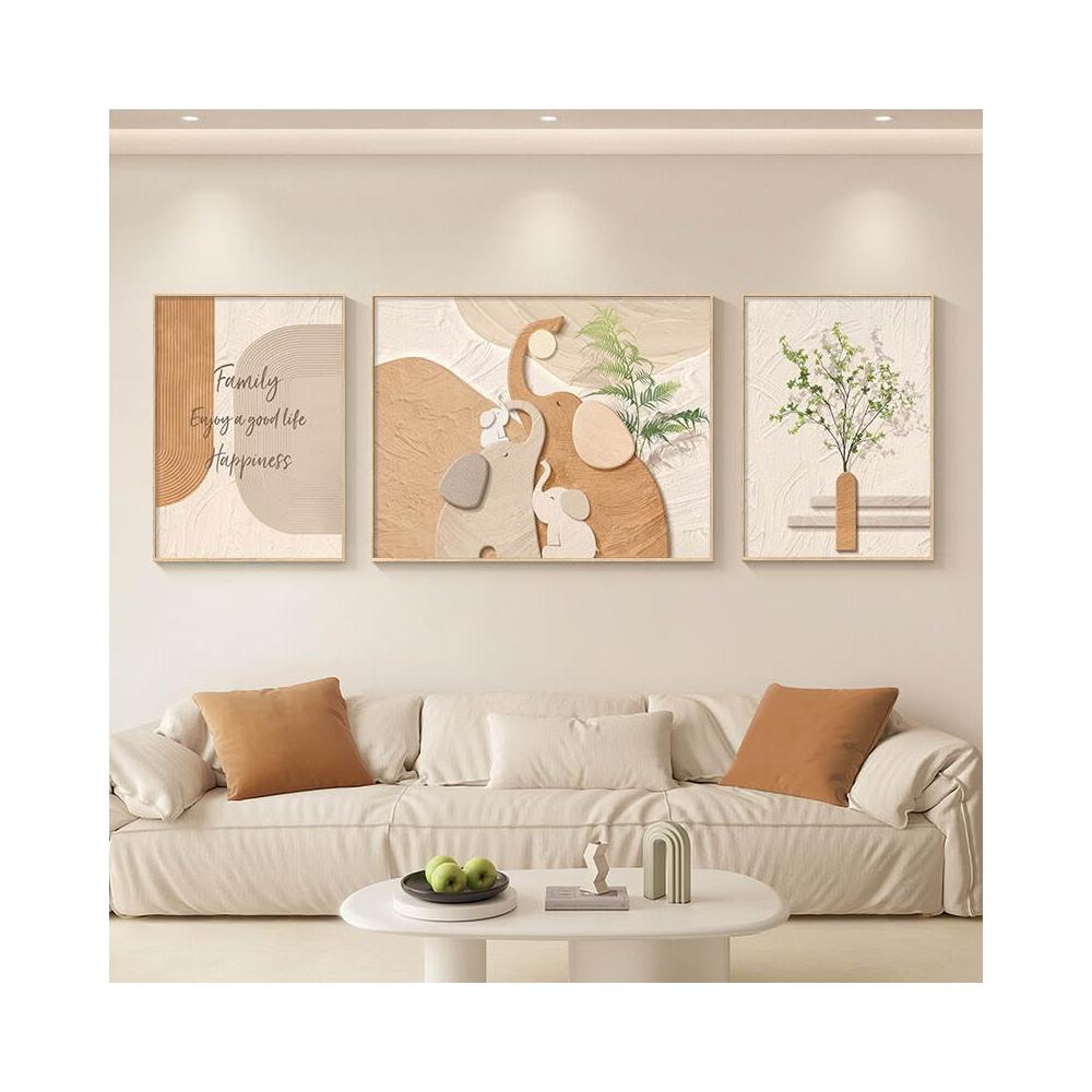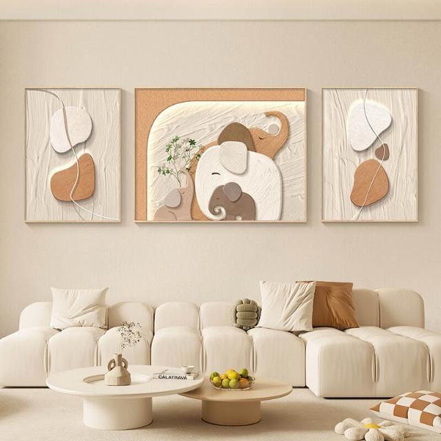 輕氧衣櫥 奶油風客廳裝飾畫高級感大象綠植三聯壁畫現代簡約沙發背景墻掛畫 0589