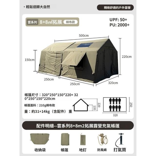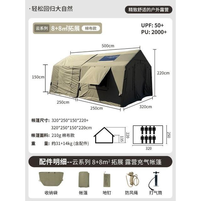京路發8+8.8棉布拓展自動充氣帳篷屋脊營地露營一室一廳戶外野營 c77