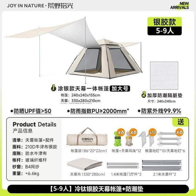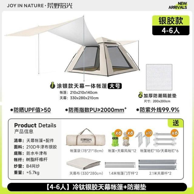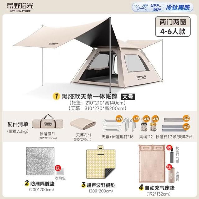 露營帳篷戶外全套裝備帳篷全自動野營帳篷天幕二合一野營過夜裝備 2f4