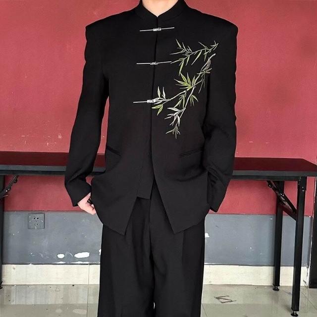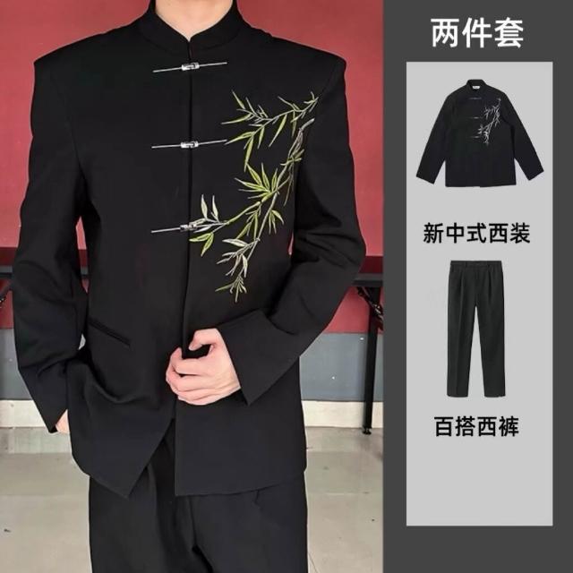 新中式男裝國風西裝外套年輕人訂婚禮服DK立領中山裝民國唐裝一套
