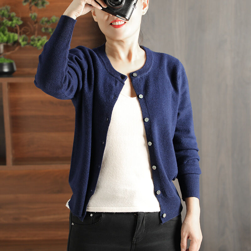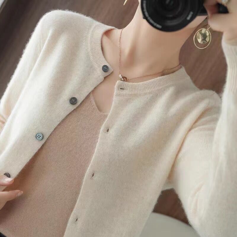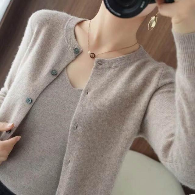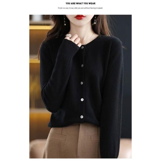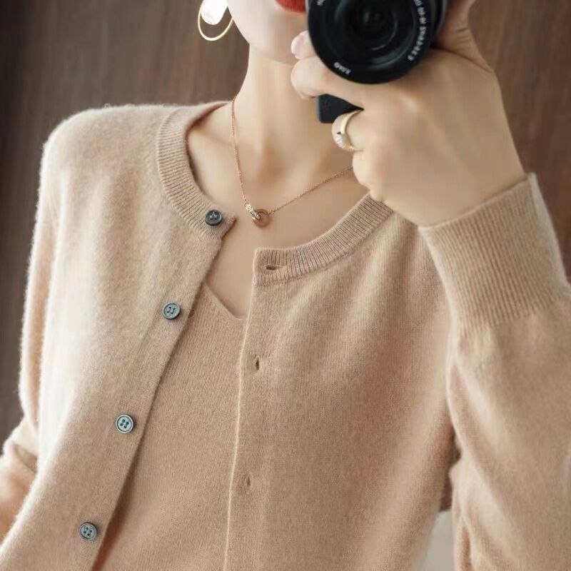 輕氧衣櫥 純羊毛衫開衫女春秋2025新款上衣羊絨外搭針織衫秋冬毛衣外套