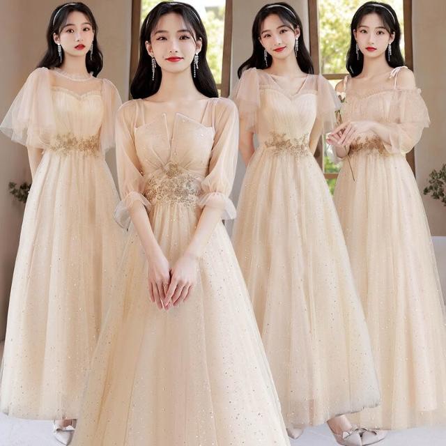 輕氧❤️伴娘服 香槟色 氣質顯瘦 2026新款 主持人 姐妹團 伴娘團禮服 仙氣晚禮服