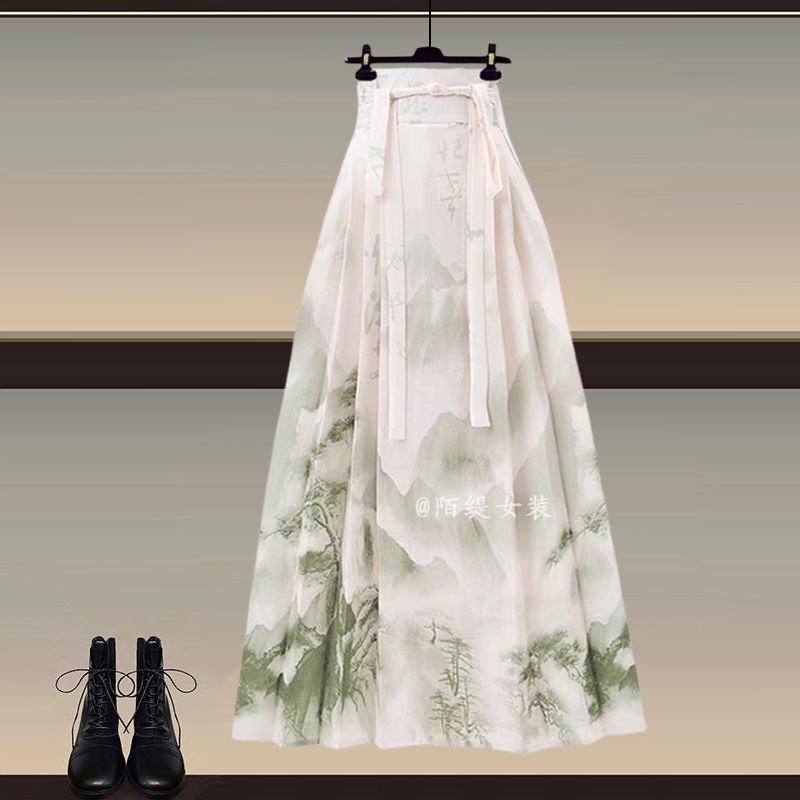 輕氧❤️新中式 女裝穿搭一整套 2026新款 改良漢服 上衣國風馬面裙 顯瘦兩件套