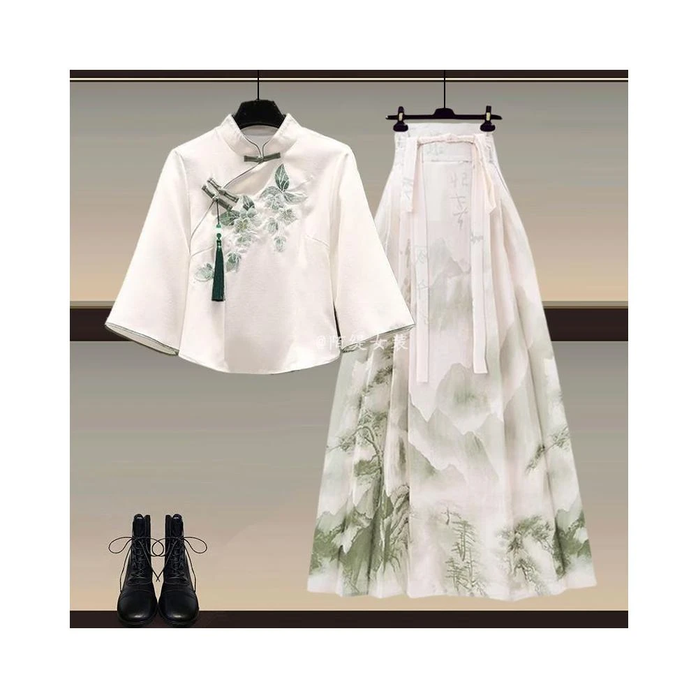 輕氧❤️新中式 女裝穿搭一整套 2026新款 改良漢服 上衣國風馬面裙 顯瘦兩件套