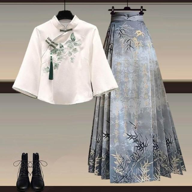 輕氧❤️新中式 女裝穿搭一整套 2026新款 改良漢服 上衣國風馬面裙 顯瘦兩件套