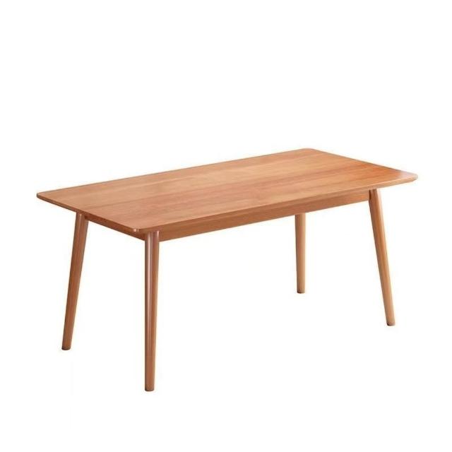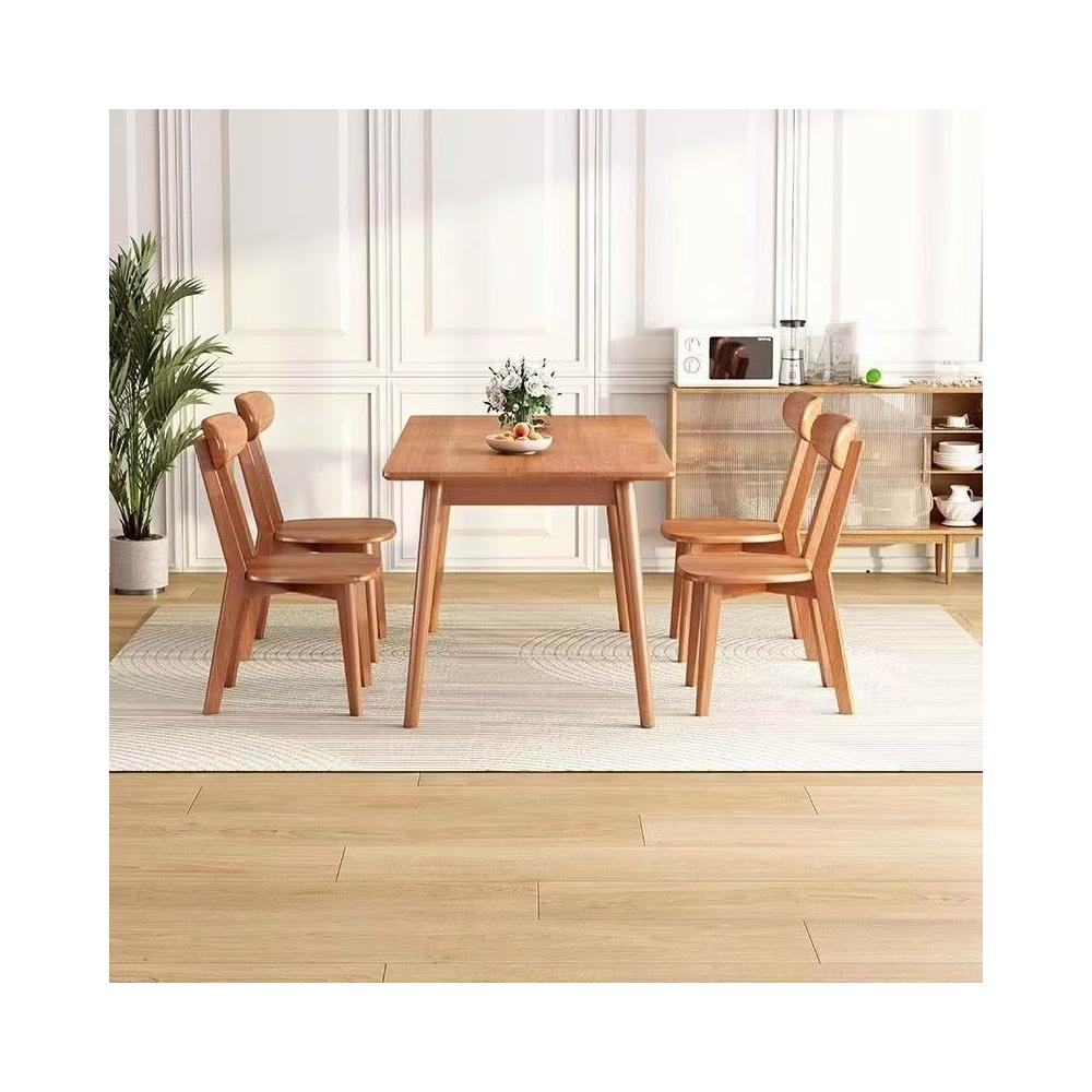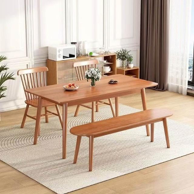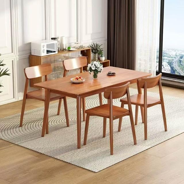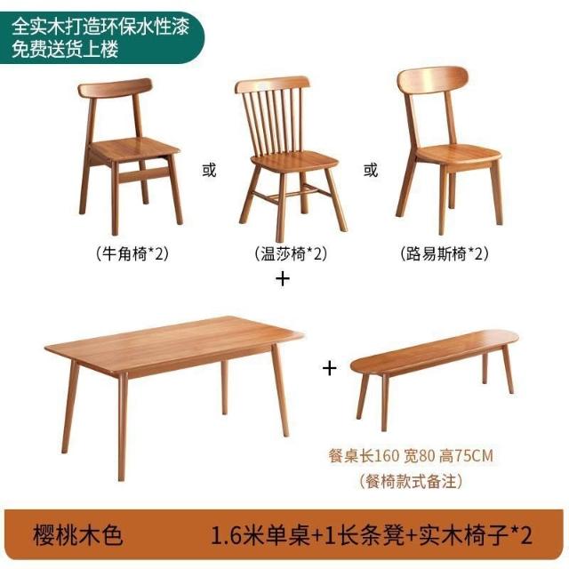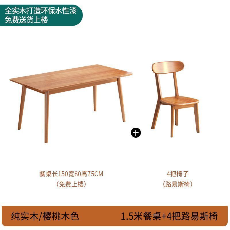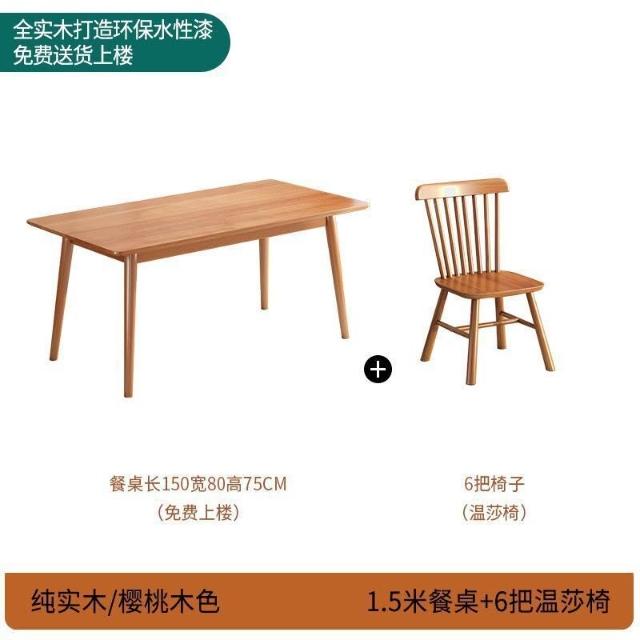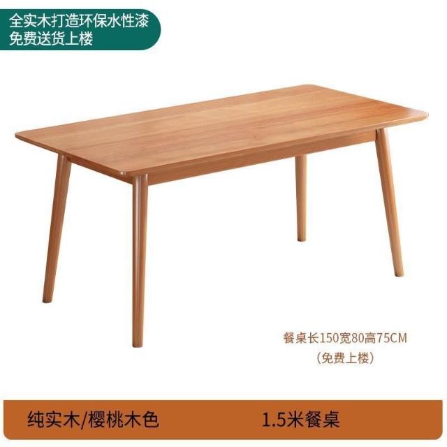 櫻桃木色餐桌椅組合全實木餐桌家用餐廳桌長方形橡膠木桌椅組合 019
