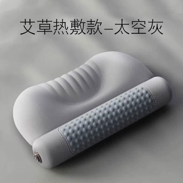 輕氧❤️艾草熱敷頸椎枕頭 護勁椎助睡眠睡覺用 圓柱加熱護頸枕 記憶棉艾灸枕 98a
