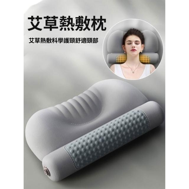 輕氧❤️艾草熱敷頸椎枕頭 護勁椎助睡眠睡覺用 圓柱加熱護頸枕 記憶棉艾灸枕 98a