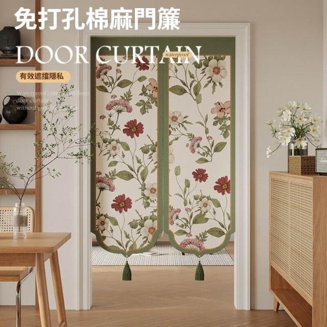 輕氧❤️ 紅色棉麻門簾 臥室房間家用 茶室防窺隔斷簾 遮擋簾衛生間 免打孔布簾 0fe