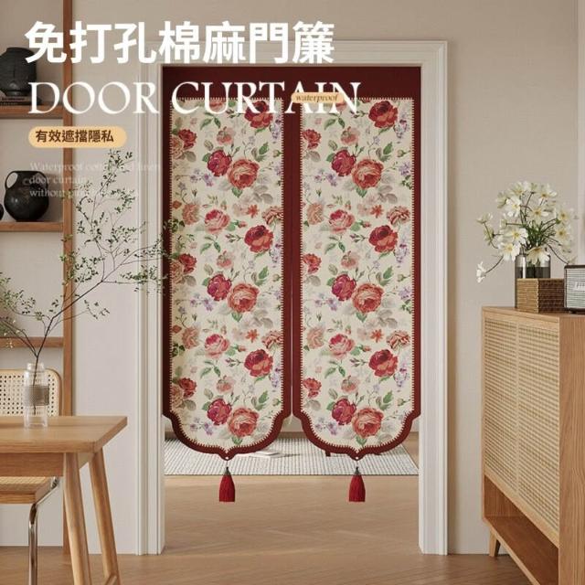輕氧❤️ 紅色棉麻門簾 臥室房間家用 茶室防窺隔斷簾 遮擋簾衛生間 免打孔布簾 0fe