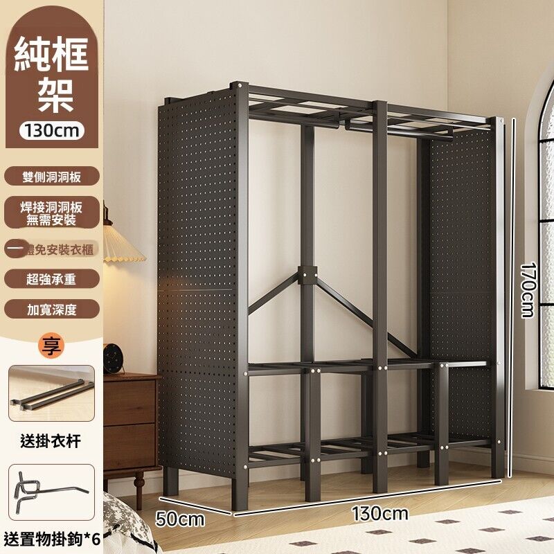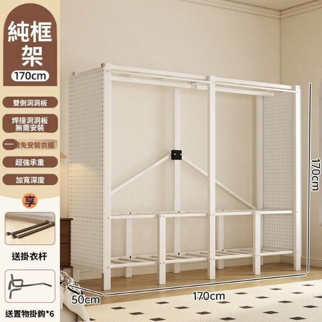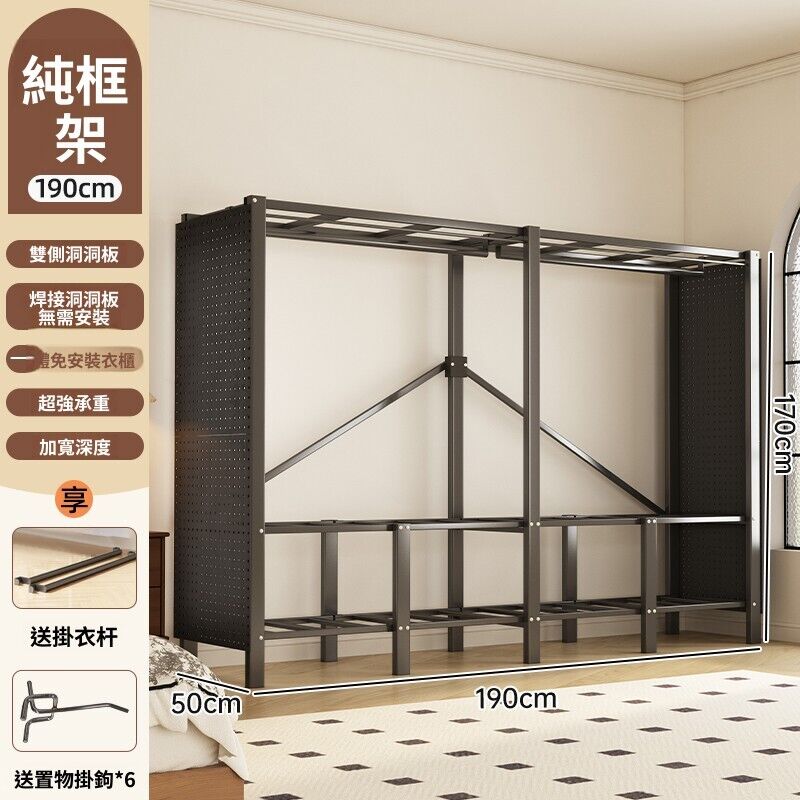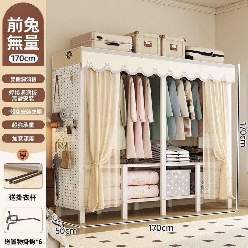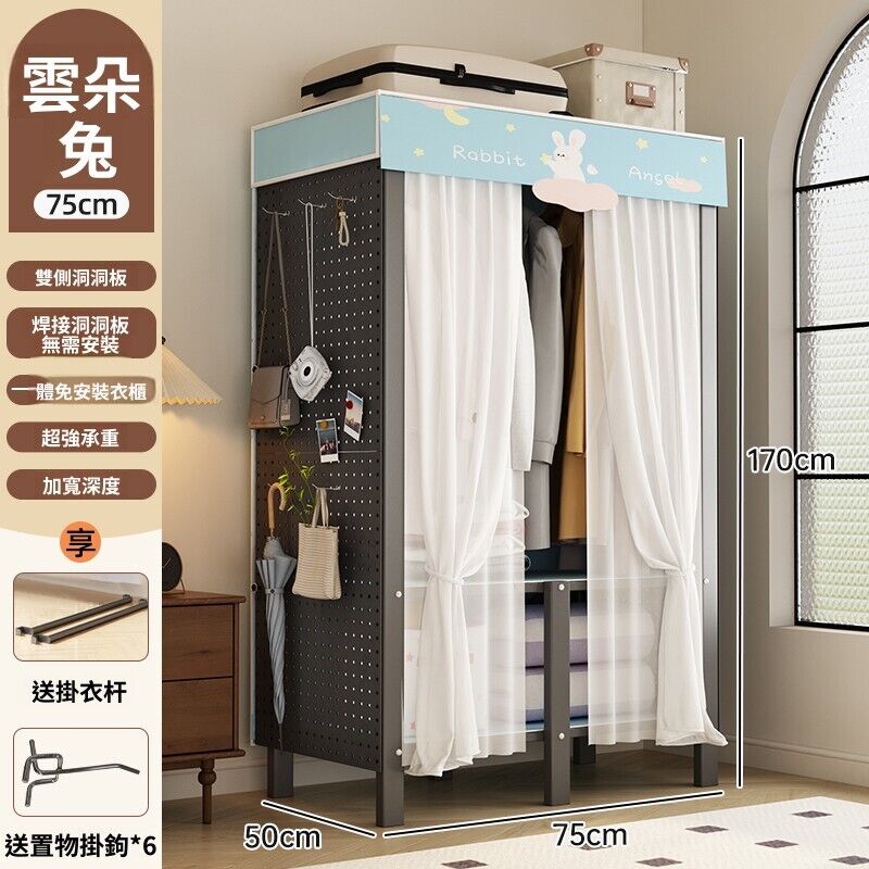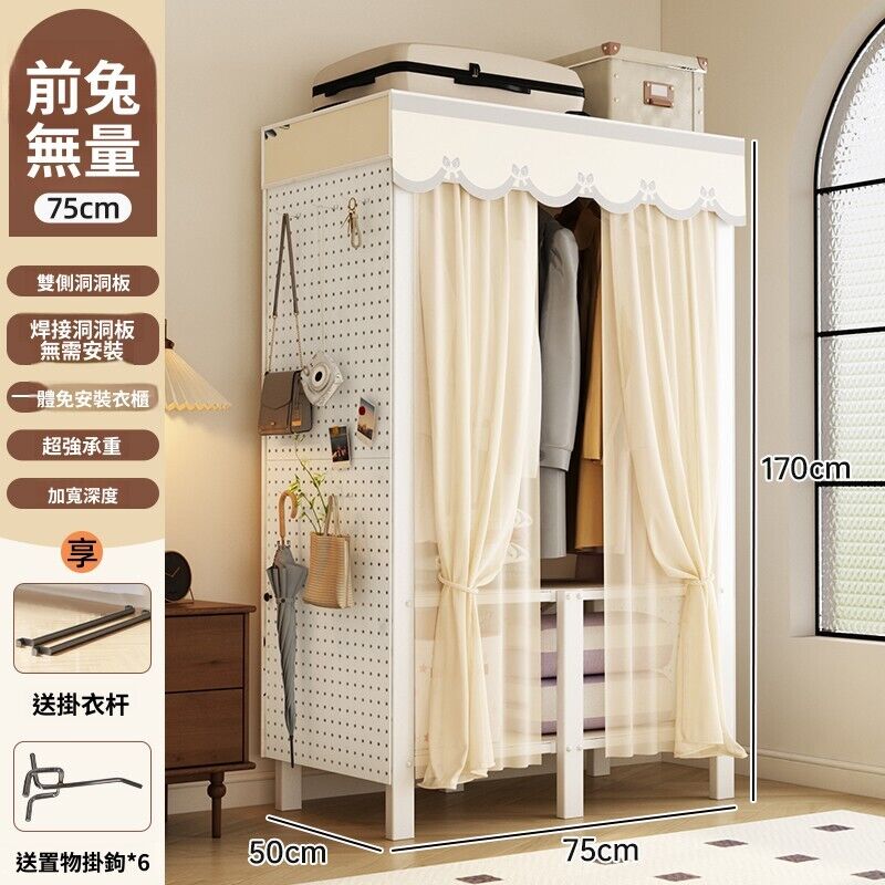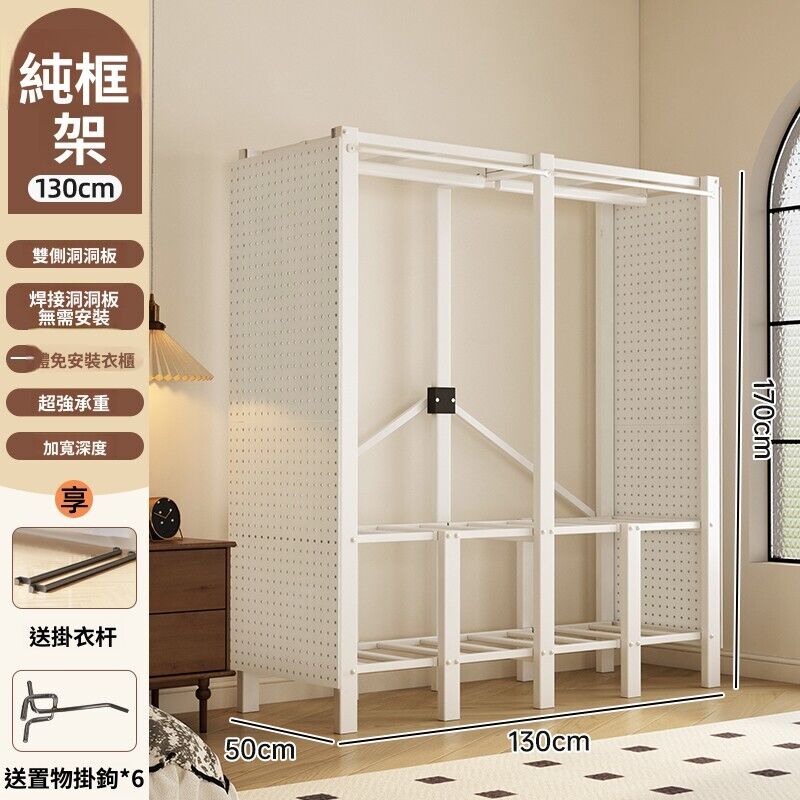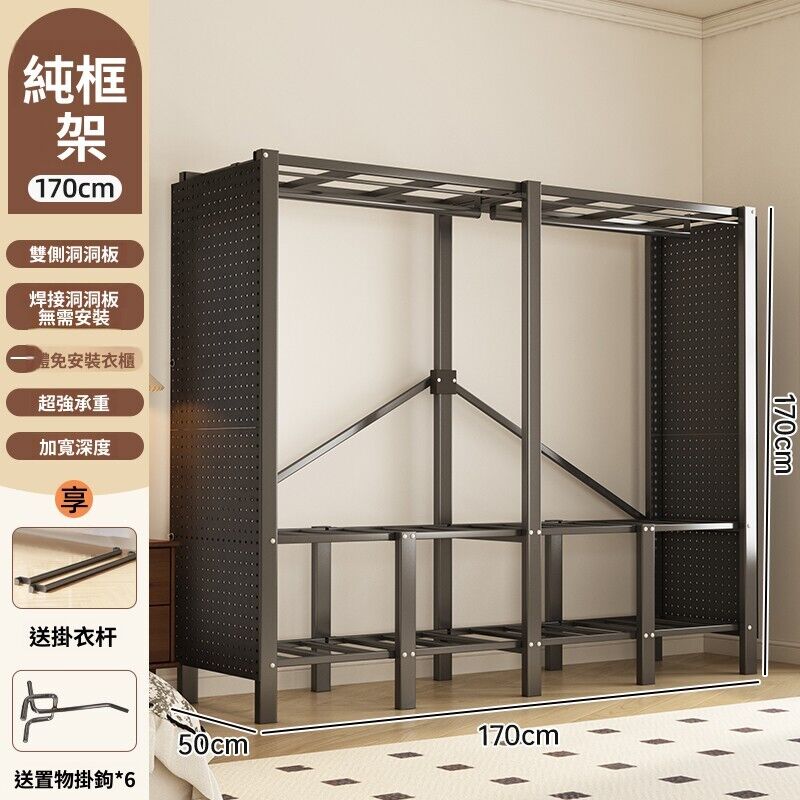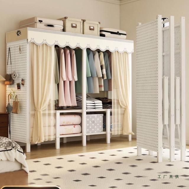 衣櫃家用臥室免安裝洞洞板簡易布衣櫃出租房全鋼架組裝衣櫥25新款 34a